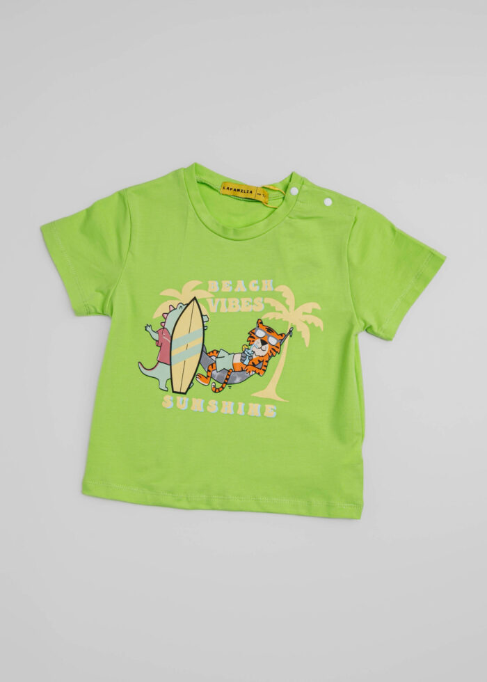 تيشيرت أطفال بيبي ولادي, طباعة “Beach Vibes” من الامام, ياقة مدورة مع ازرار من الجانب, اكمام قصيرة, انيقة وعصرية