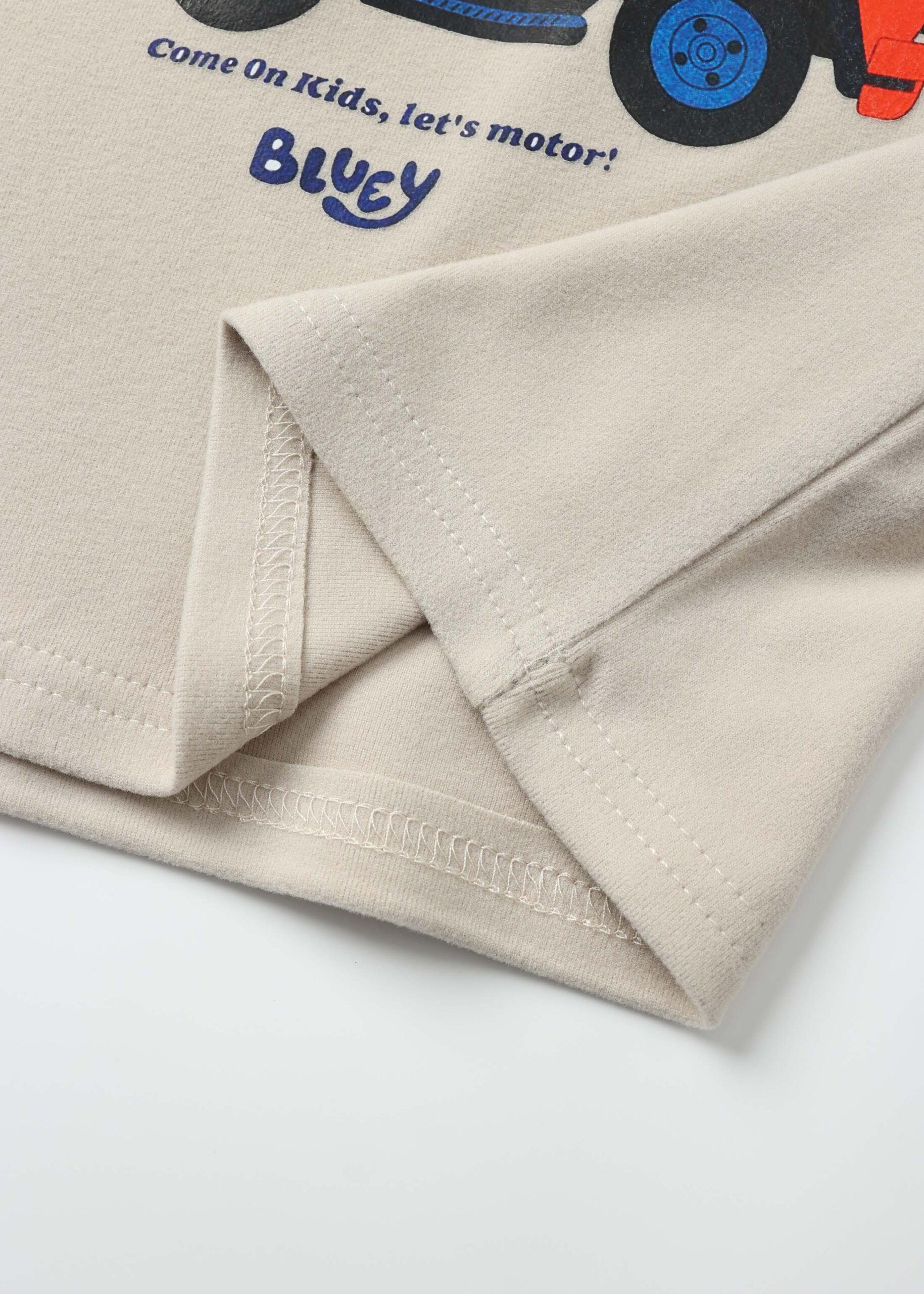 Baby boy pajama, two-pieces, “Bluey” printed, blouse, round neck, long sleeves, trouser, plain, elastic waist, elastic ankle, practical and comfortable