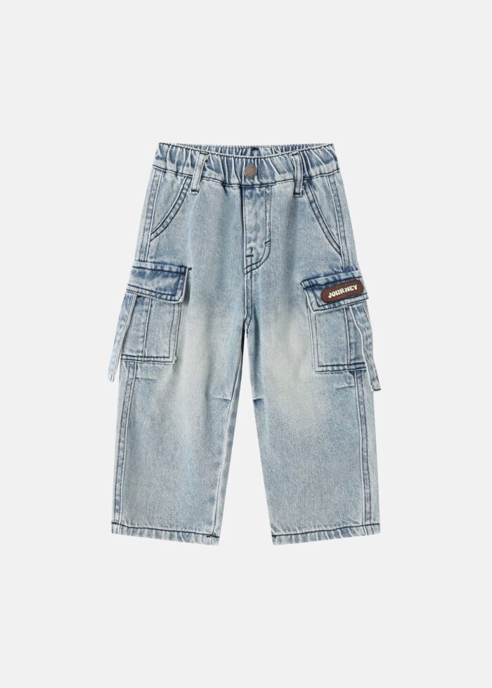 بنطلون أطفال بيبي ولادي, كارجو, جينز, خصر مطاطي مع زر وهمي من الامام, جيوب من الامام, جيوب جانبية, انيق وعملي