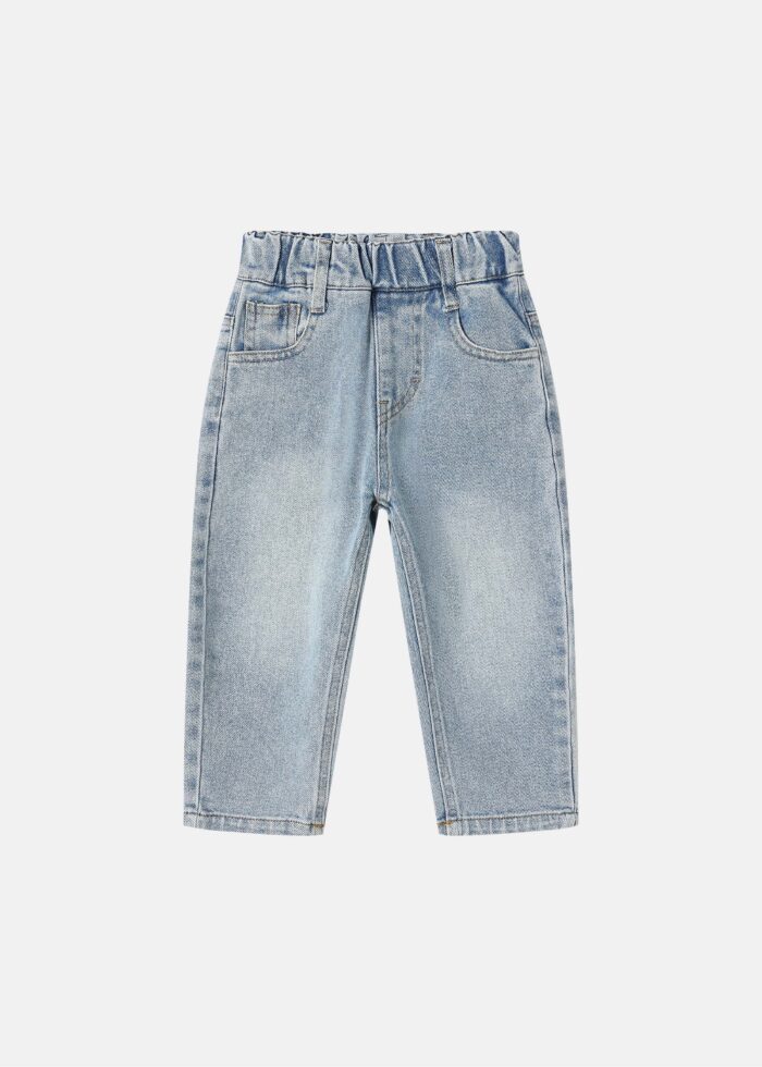 بنطلون اطفال بيبي ولادي, جينز, خصر مطاطي, جيوب من الامام والخلف, تطريز “Alo” من الخلف, انيق وعصري