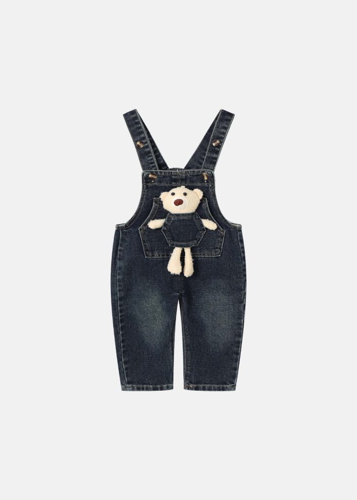 افرهول اطفال بيبي ولادي, جينز, ياقة مستقيمة, اشرطة كتف مع ازرار للاغلاق, جيب من الامام مزين بدبدوب, انيق وعصري