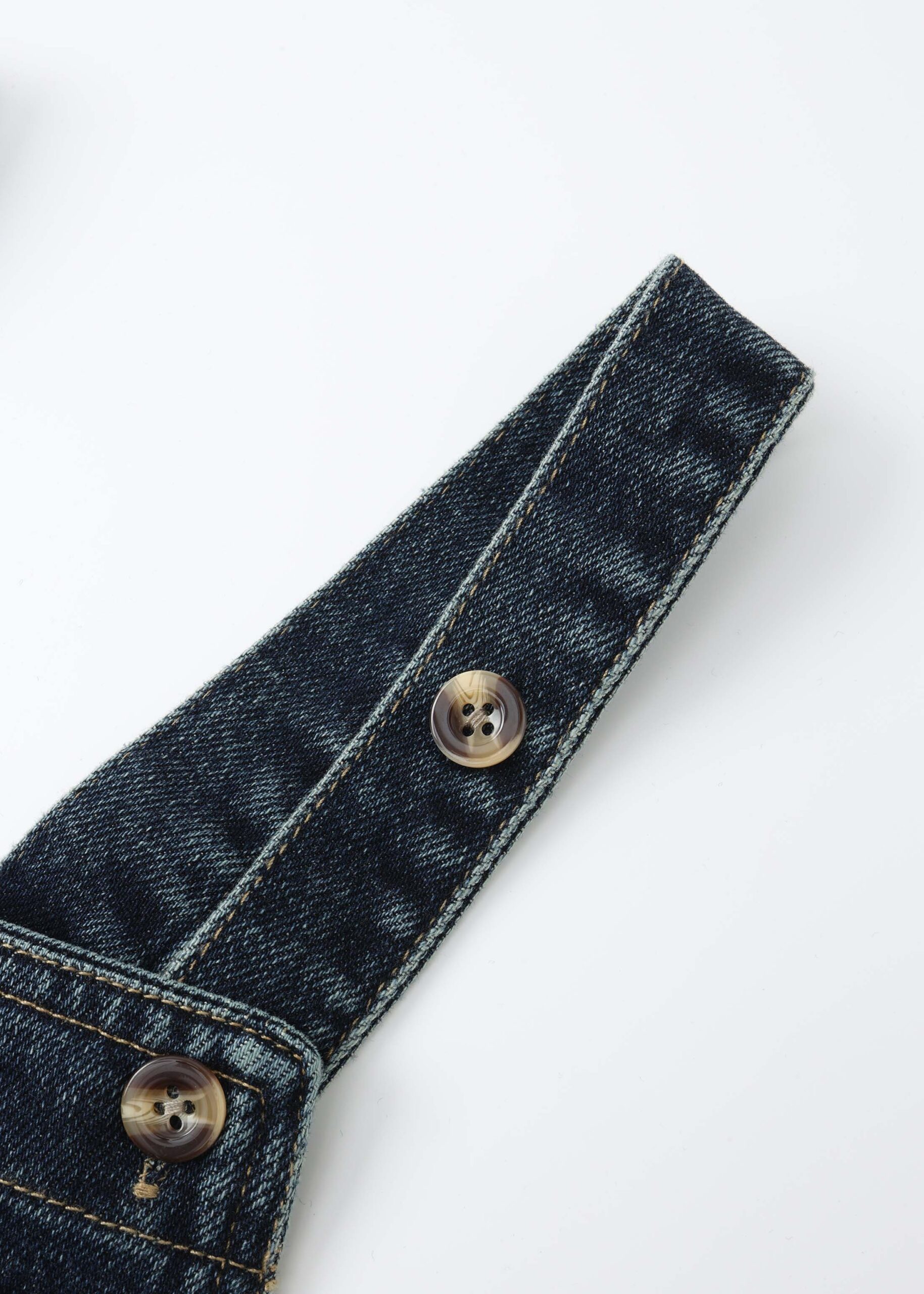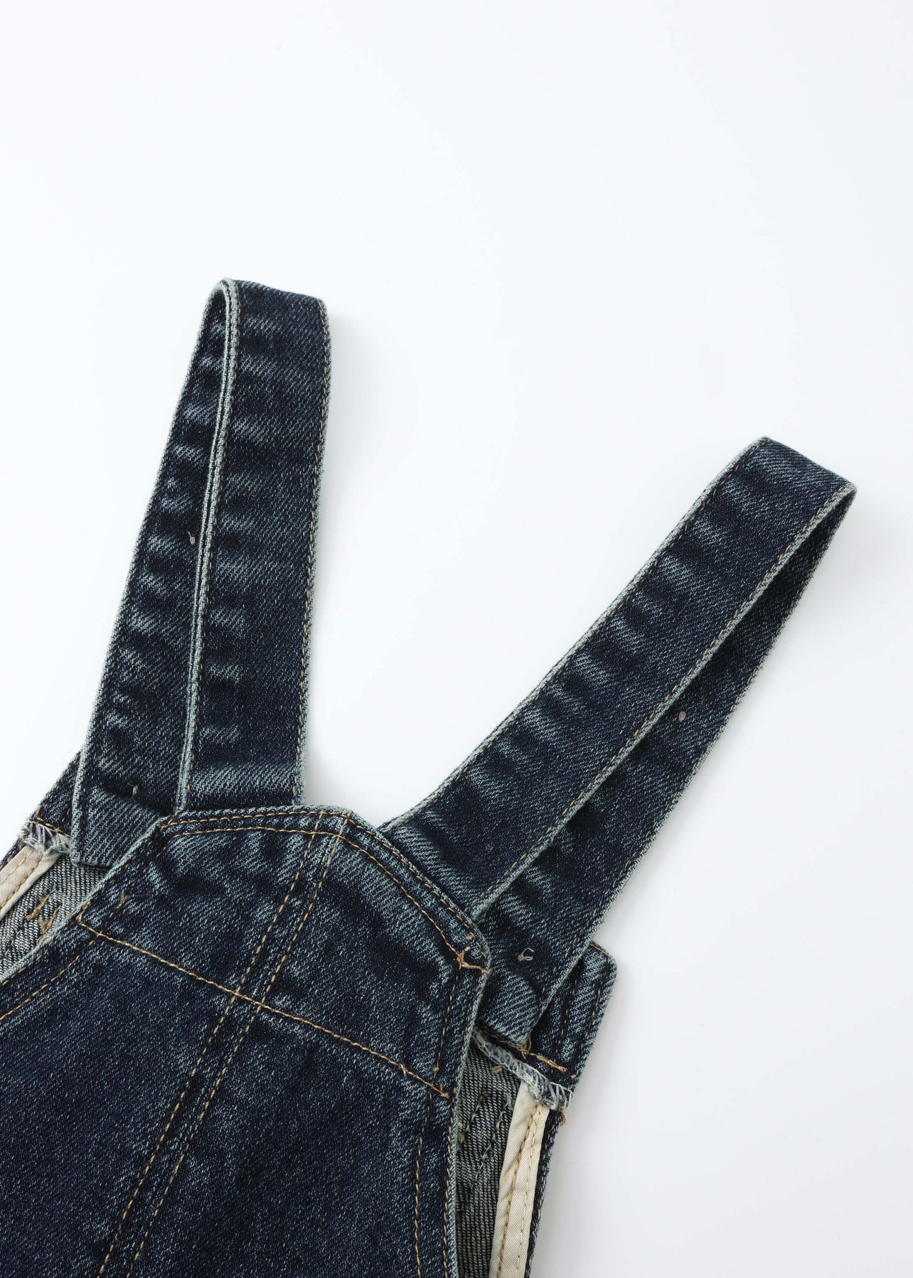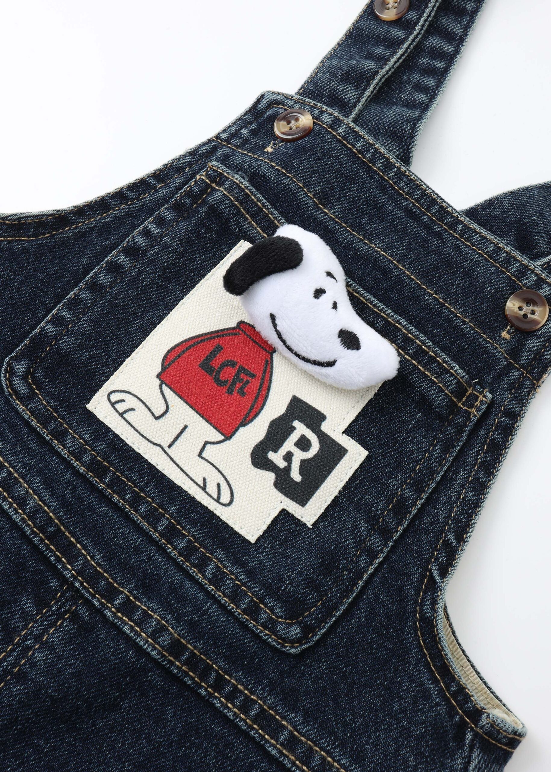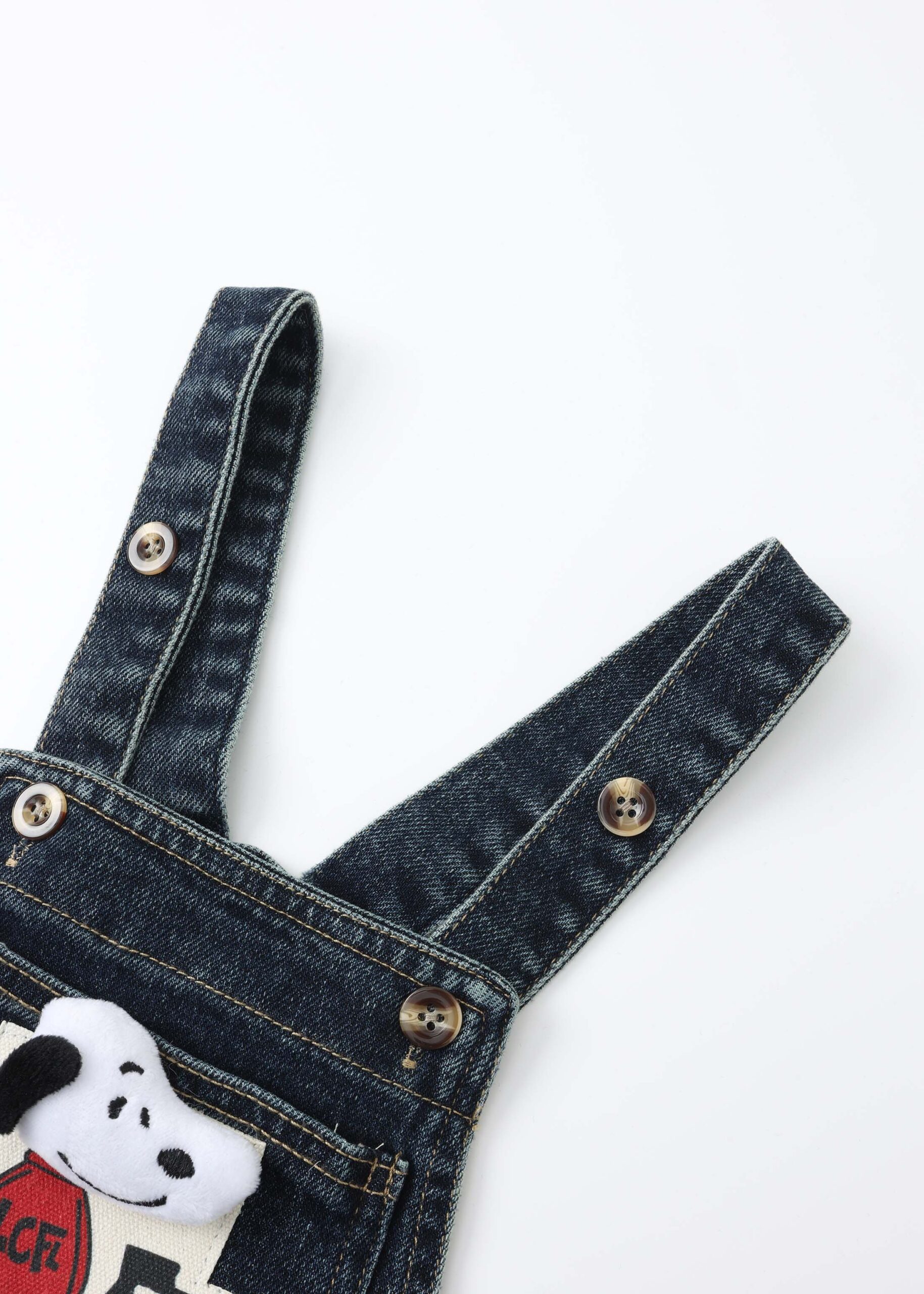 افرهول اطفال بيبي ولادي, جينز, ياقة مستقيمة, اشرطة كتف مع ازرار للاغلاق, جيب من الامام مزين بتصميم سنوبي, جيب من الخلف,انيق وعصري