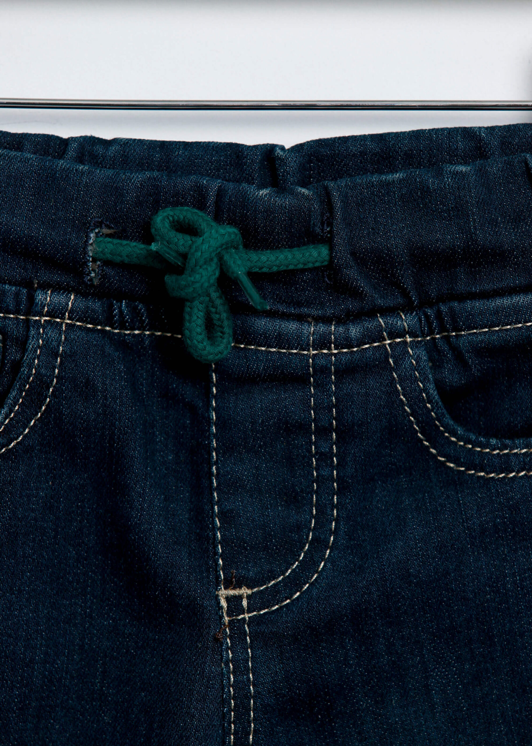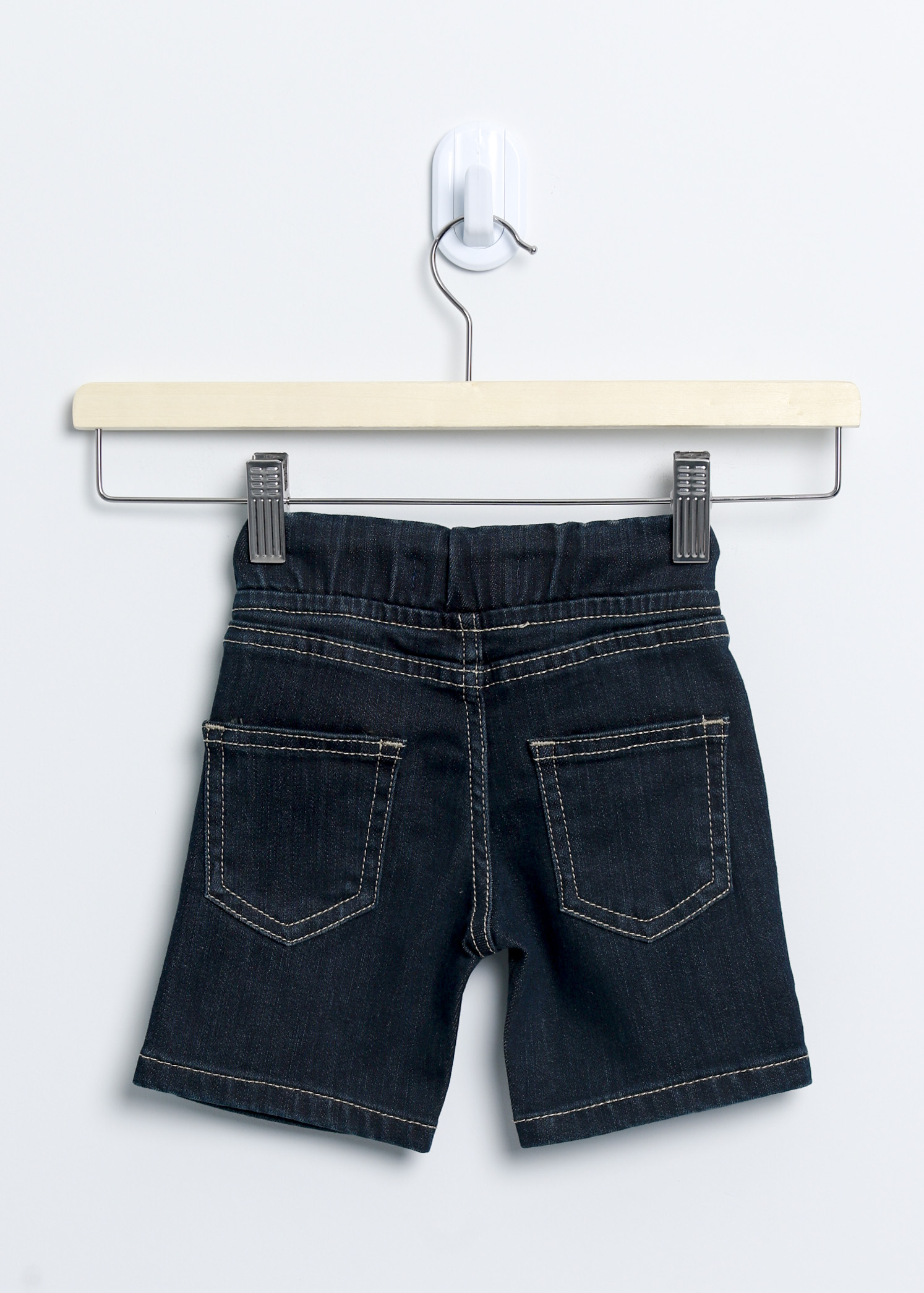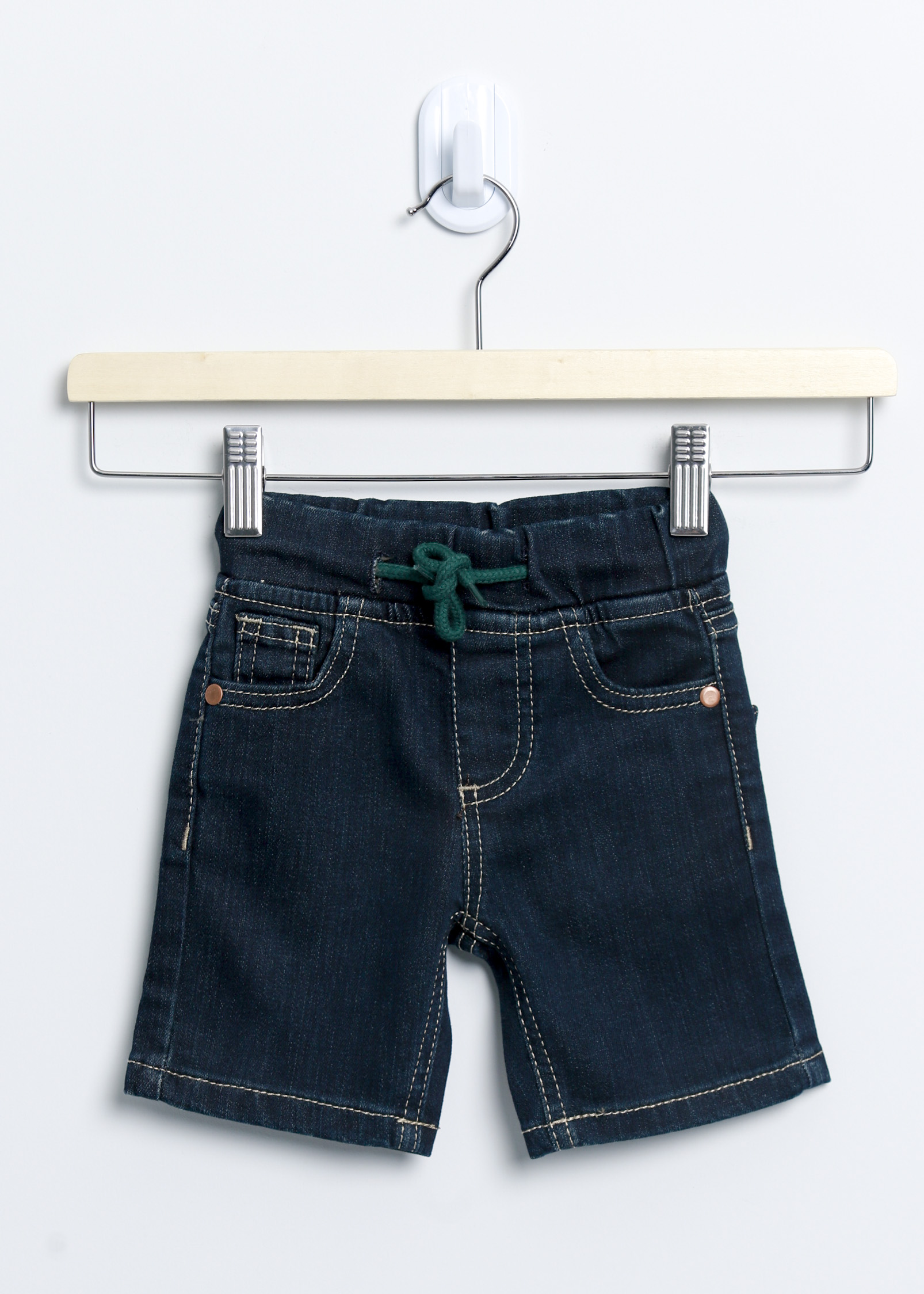 شورت اطفال بيبي ولادي, جينز, خصر مطاطي مع حبل للربط, جيوب جانبية وخلفية, تصميم وهمي للسحاب, مريح وعملي للاطفال, 98% قطن 2% ايلاستين