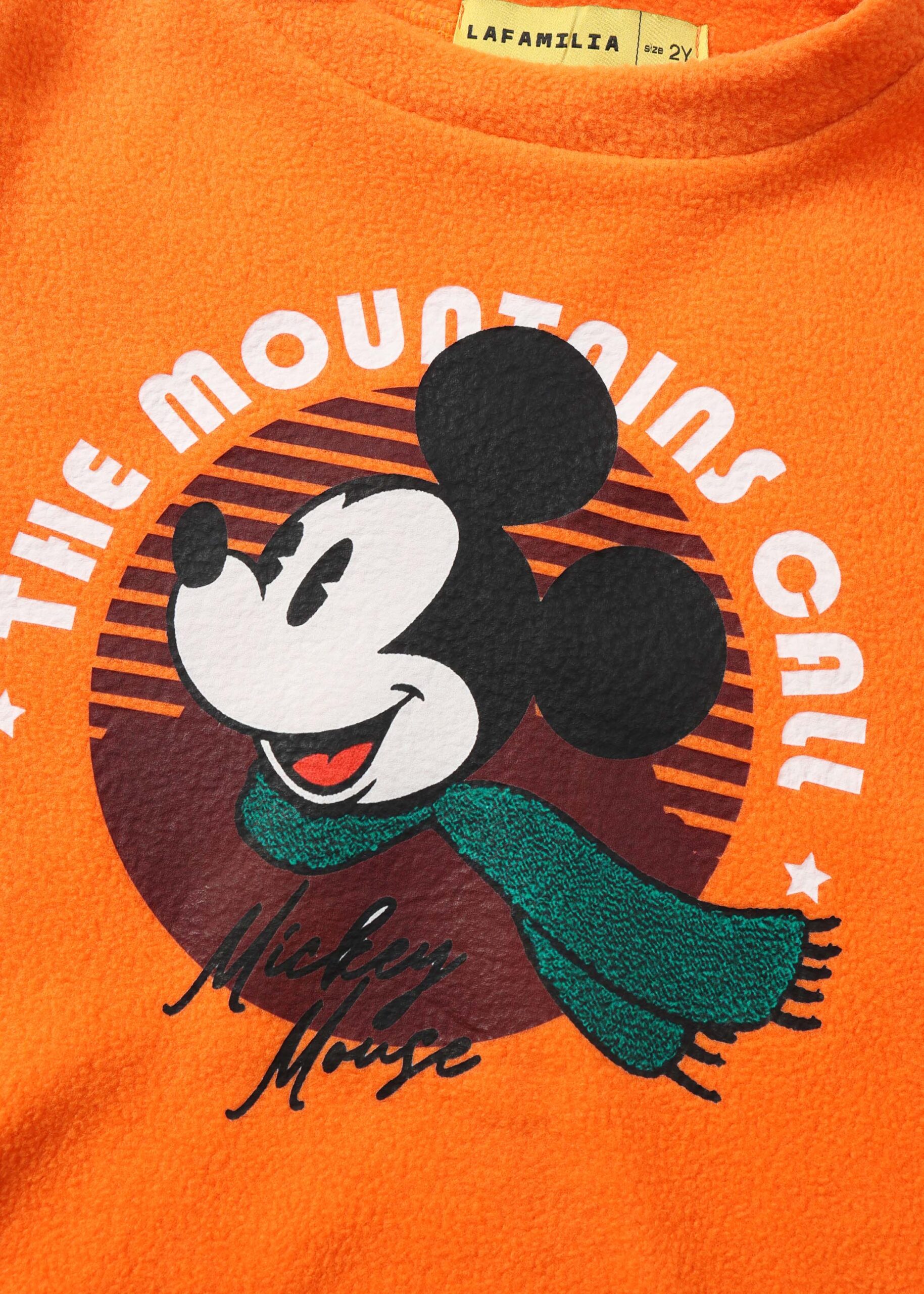 Baby boy pajama, two-pieces, “Mickey Mouse” printed, blouse, round neck, long sleeves, trouser, plain, elastic waist, elastic ankle, practical and comfortable