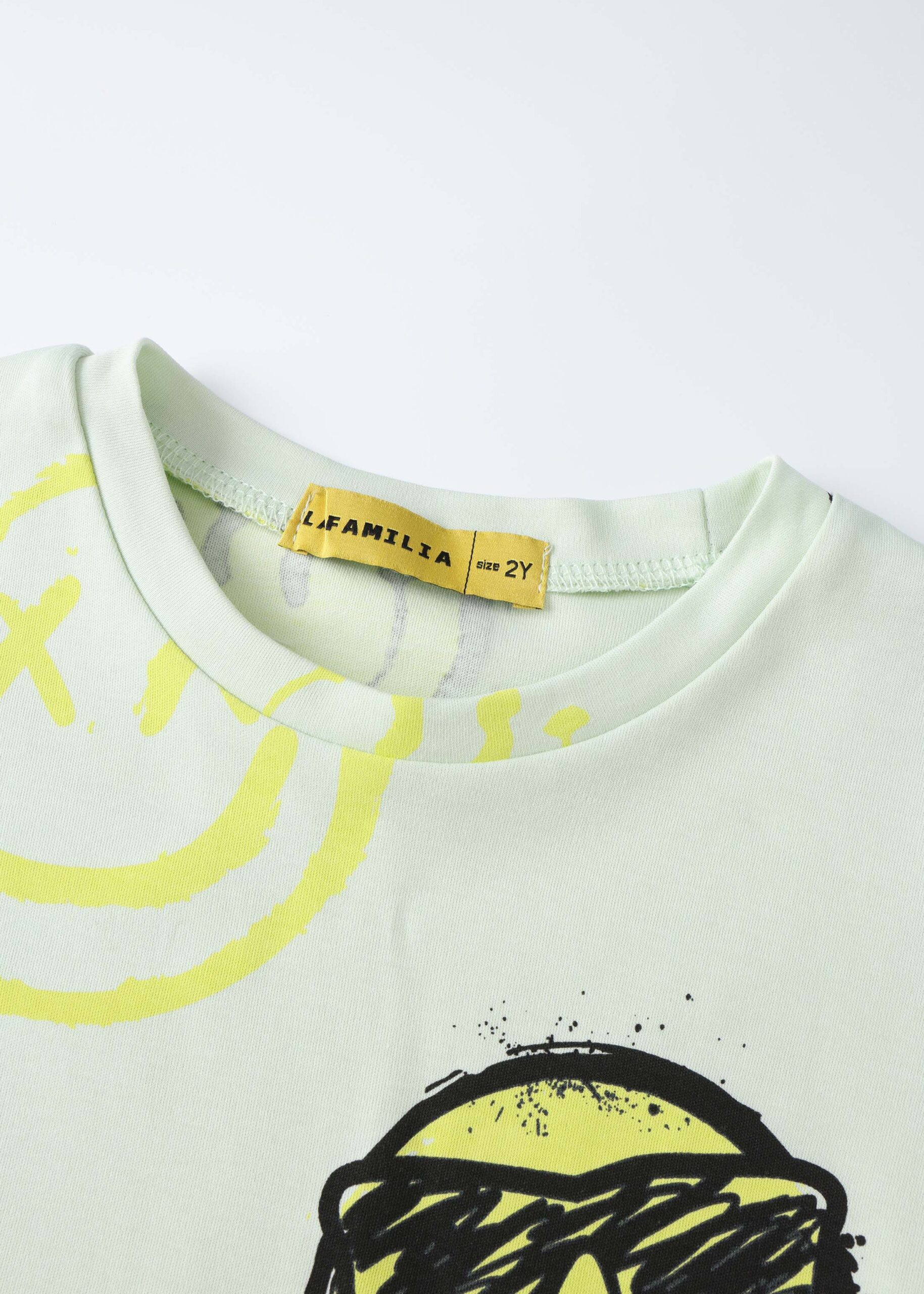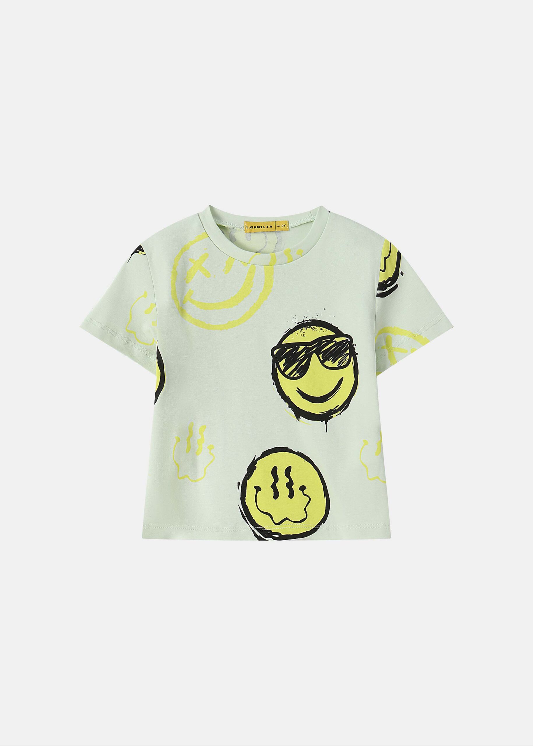 تيشيرت أطفال بيبي ولادي, طباعة سمايلي فيس, ياقة مدورة, اكمام قصيرة, انيقة وعملية