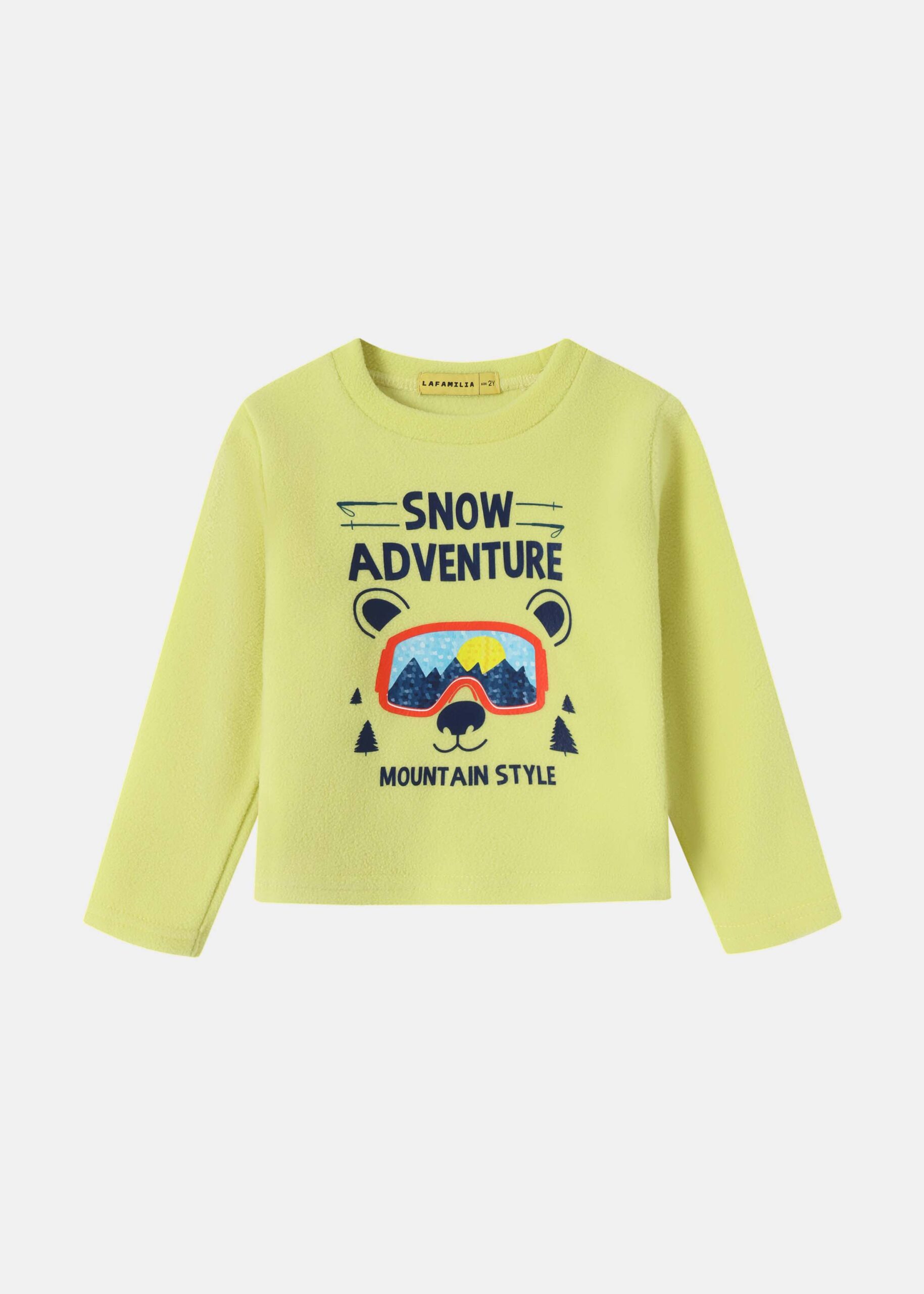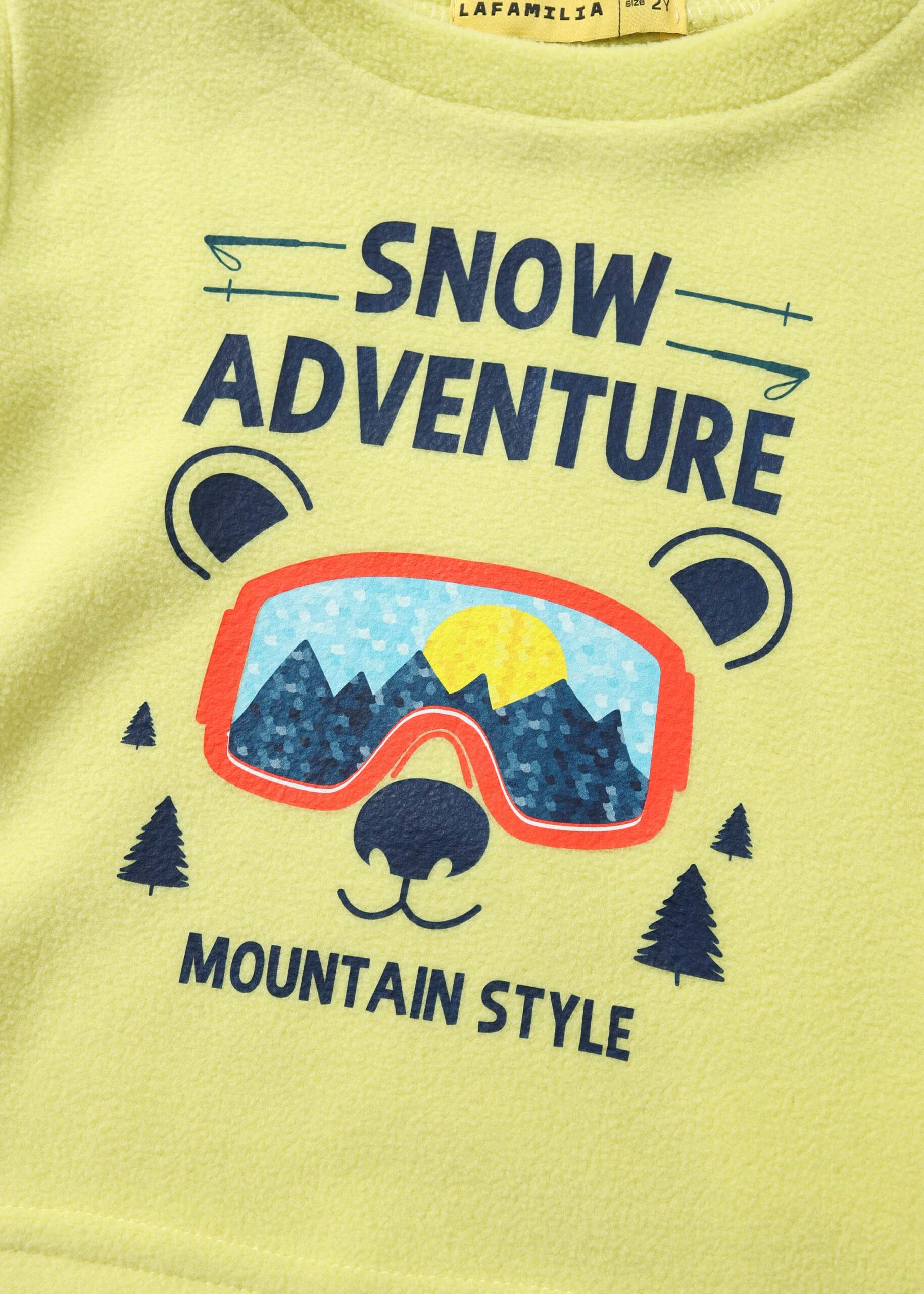 Baby boy pajama, two-pieces, “Snow Adventure” printed, blouse, round neck, long sleeves, trouser, plain, elastic waist, elastic ankle, practical and comfortable