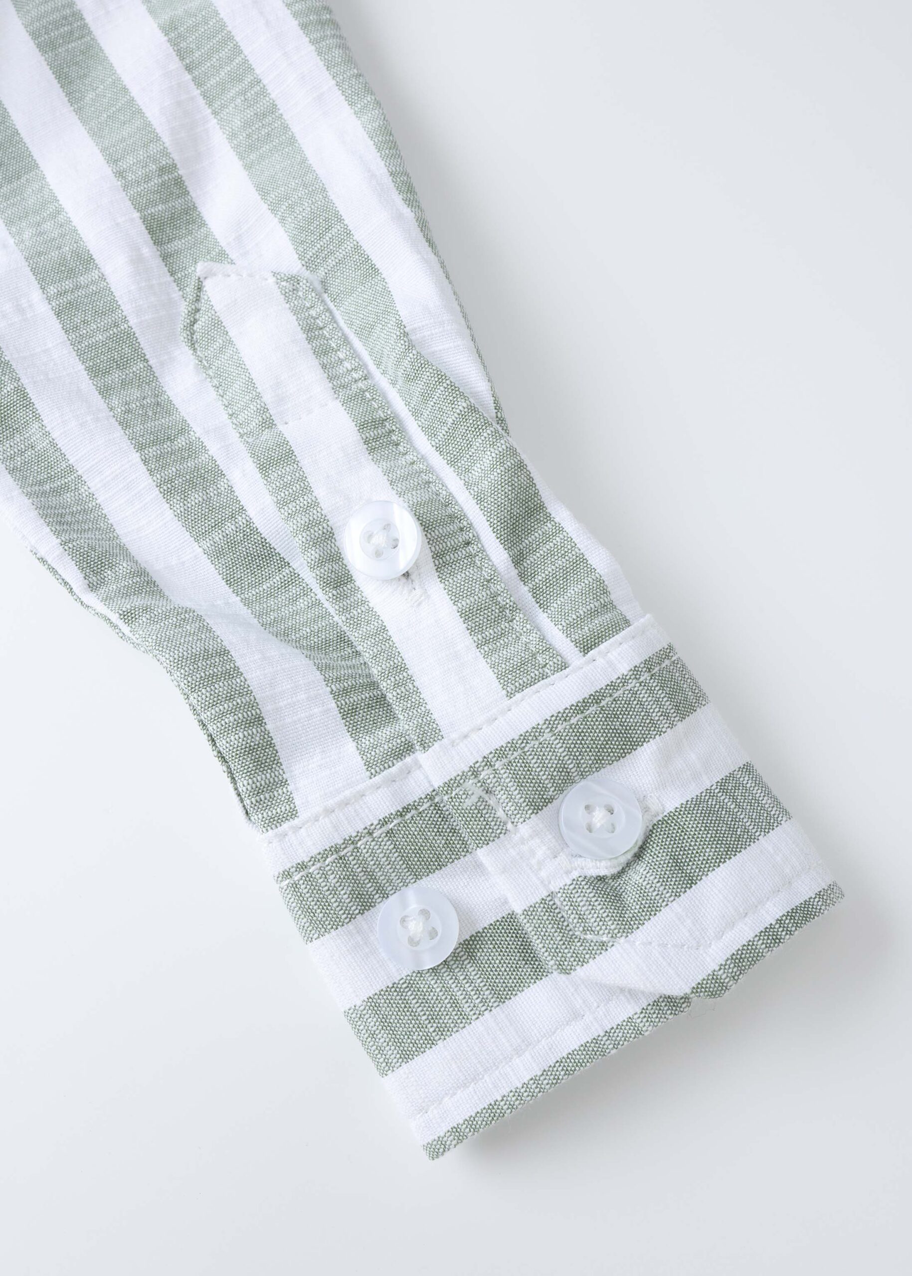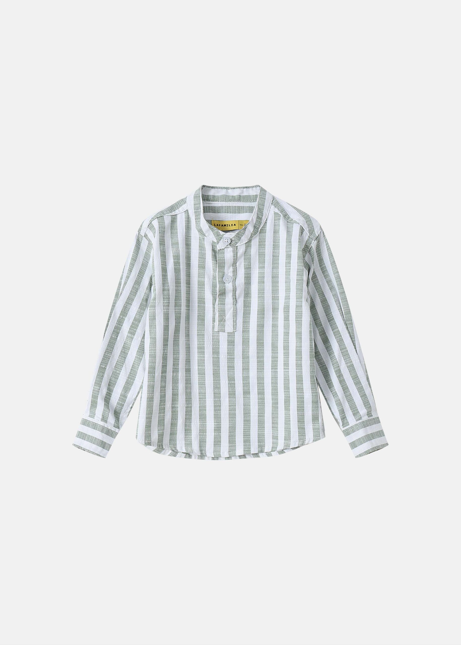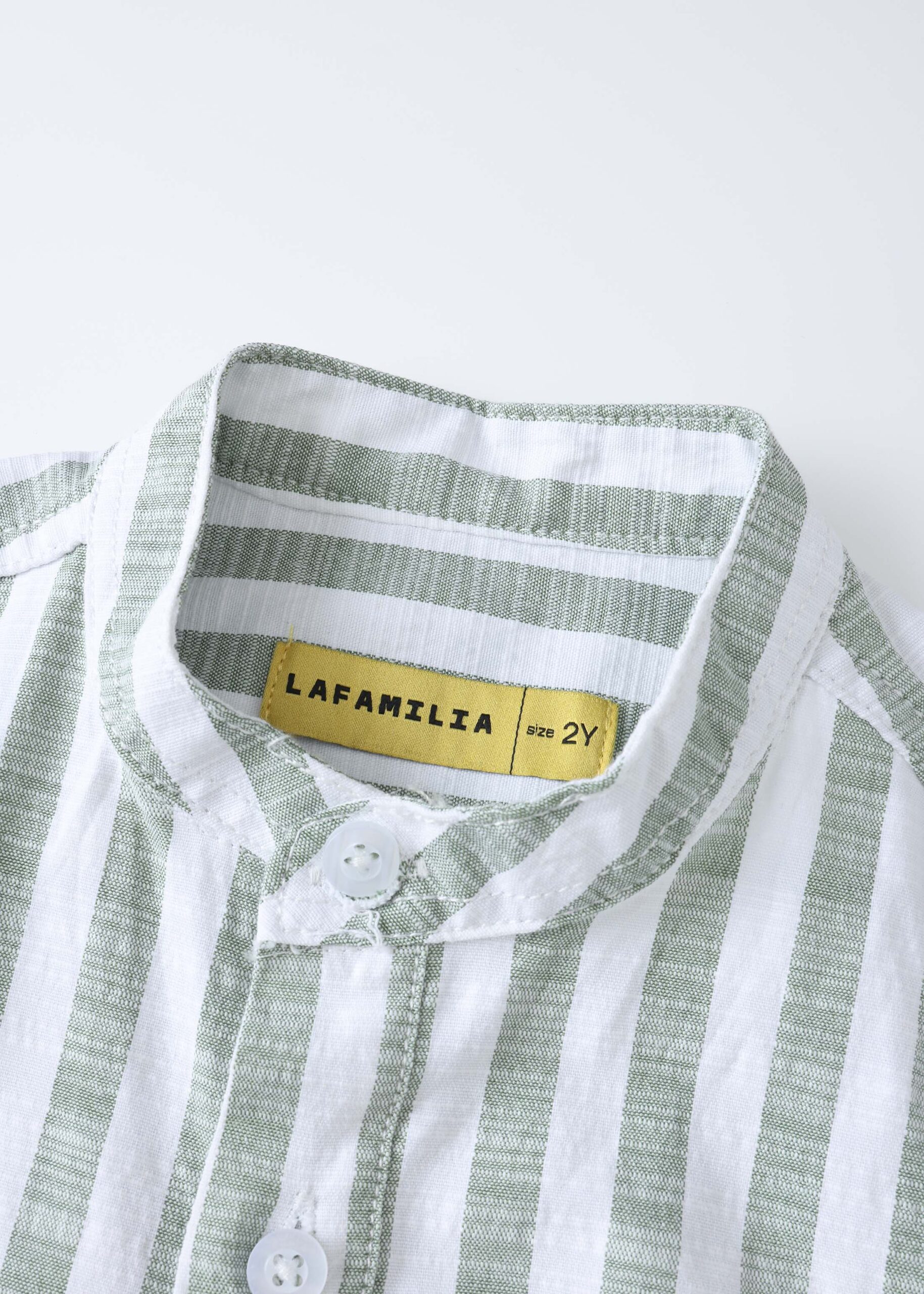 Baby boy blouse, striped, stand collar with front buttons, long sleeves with tight cuff, unique and practical