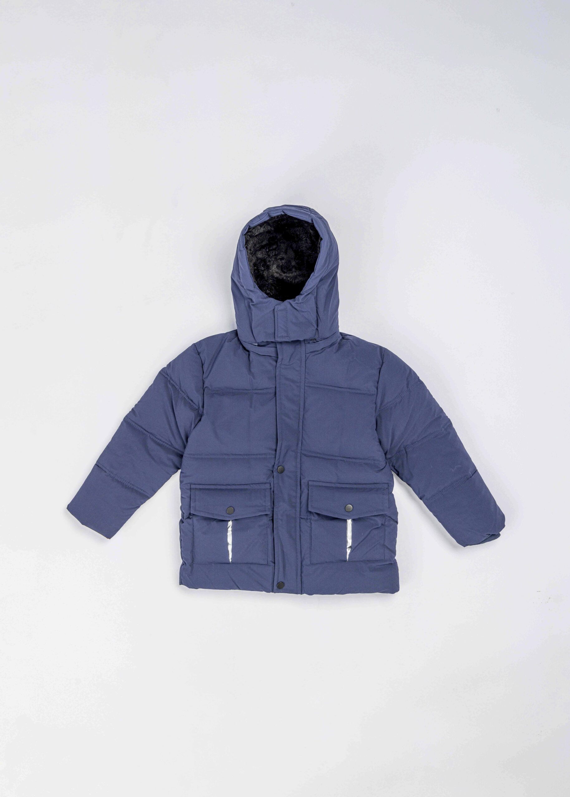 جاكيت أطفال بيبي ولادي, ضد الماء, طاقية مبطنة بالفرو مع شريط لاصق من الامام, اكمام طويلة مع معصم مطاطي, ازرار من الامام مع سحاب للاغلاق, جيوب من الامام, انيق ودافيء