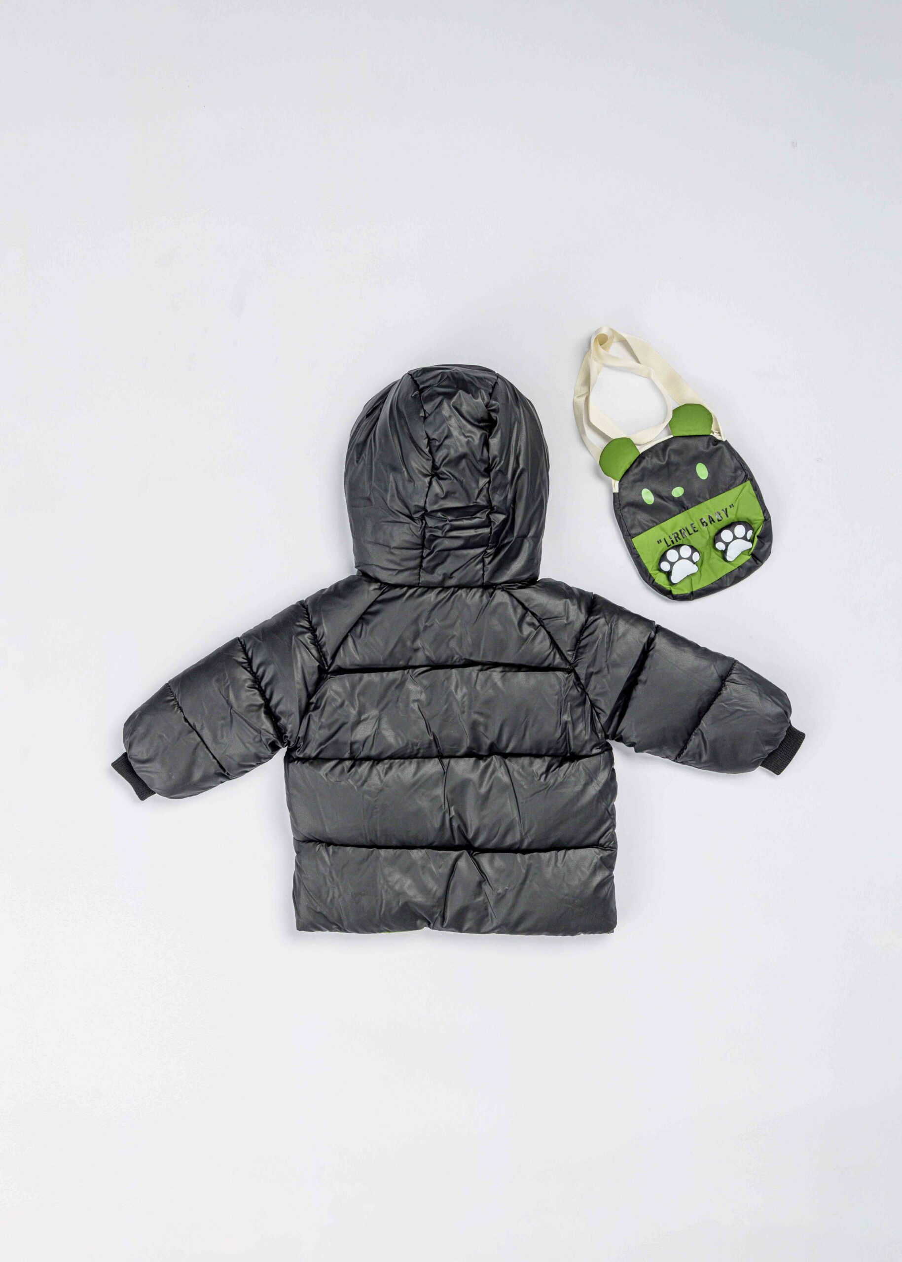 جاكيت اطفال بيبي ولادي, ضد الماء, نسيج مخطط, طاقية مع ازرار من الامام, ازارار من الامام مع سحاب للاغلاق, اكمام طويلة مع معصم ضيق, جيوب من الامام, طباعة “Lirrle Baby”, حقيبة كتف صغيرة, انيق وعملي