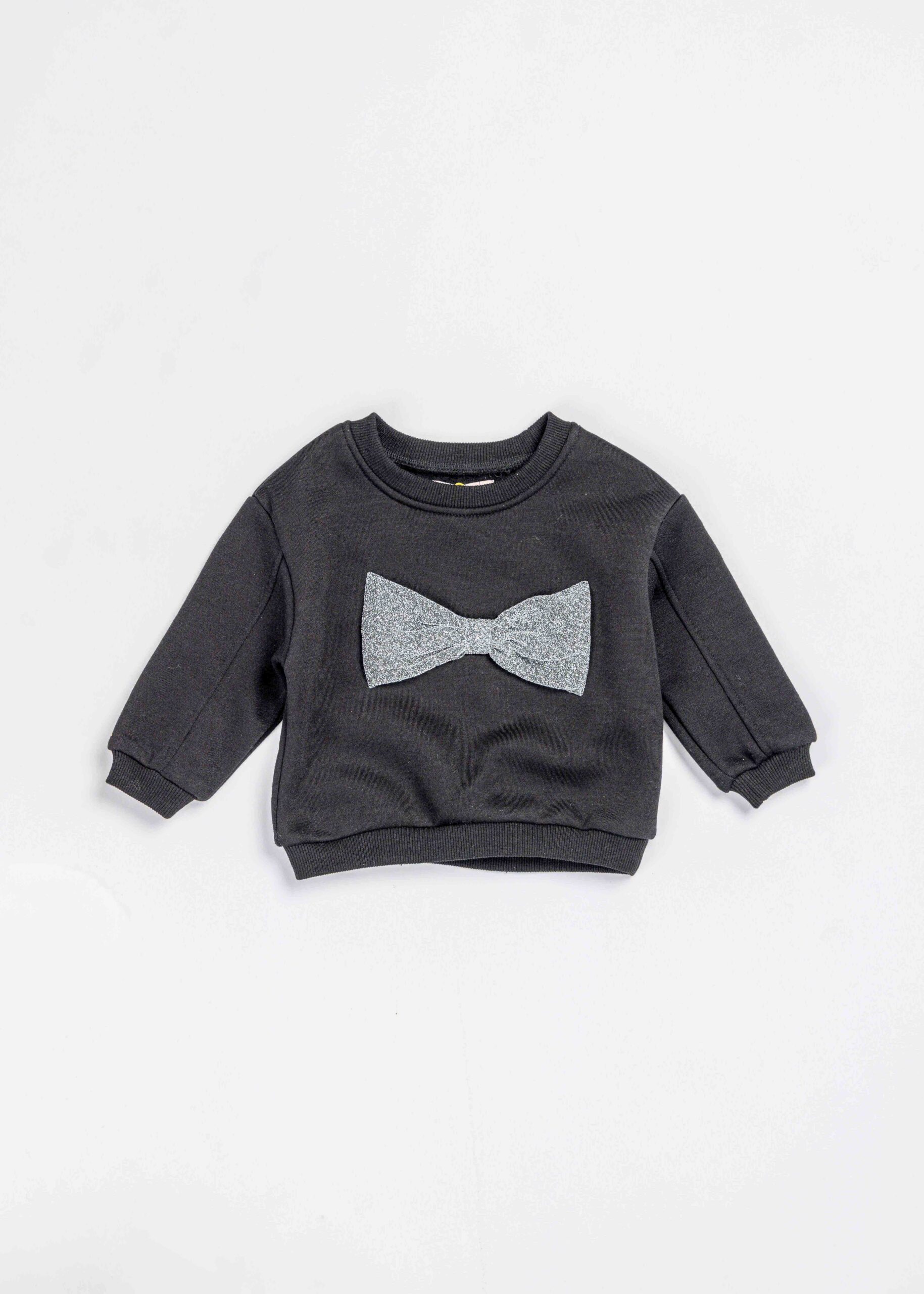 بلوزة اطفال بيبي بناتي, مزينة بفيونكة من الامام, ياقة مدورة, اكمام طويلة مع معصم ضيق, انيقة وعملية