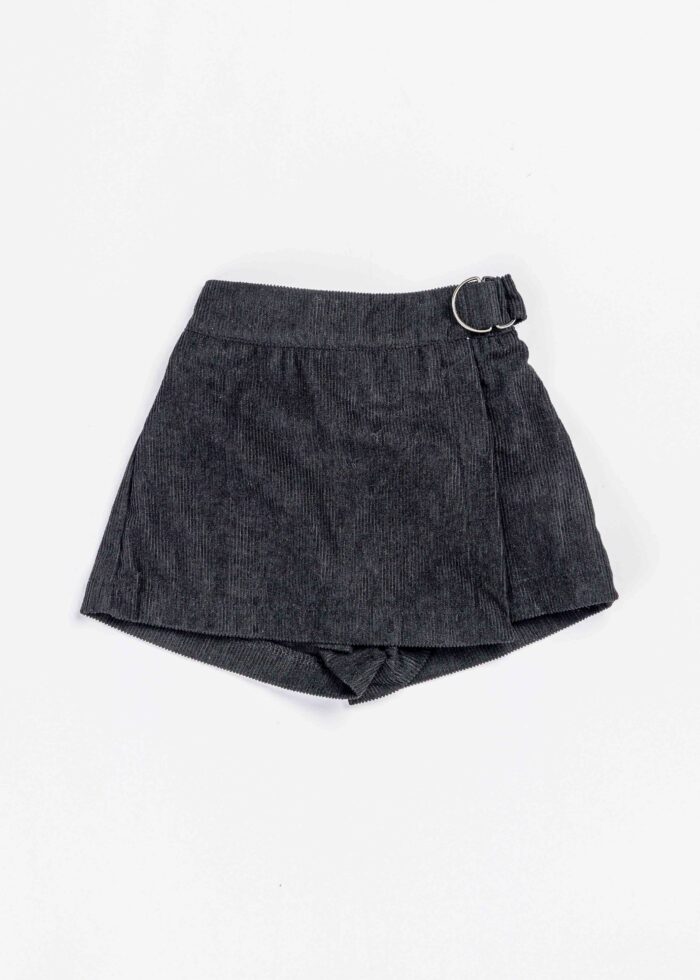 تنورة-شورت أطفال بيبي بناتي, كوردروي, خصر مطاطي, تصميم ملتف من الامام مع حزام من الجانب, انيقة وعصرية