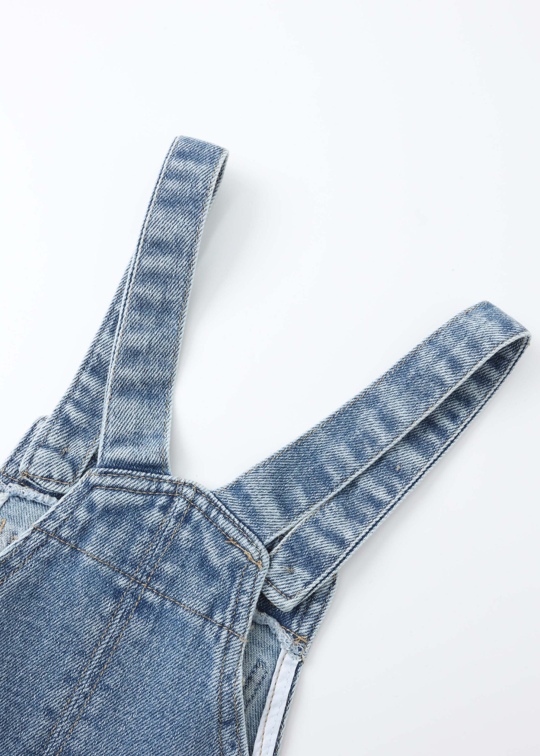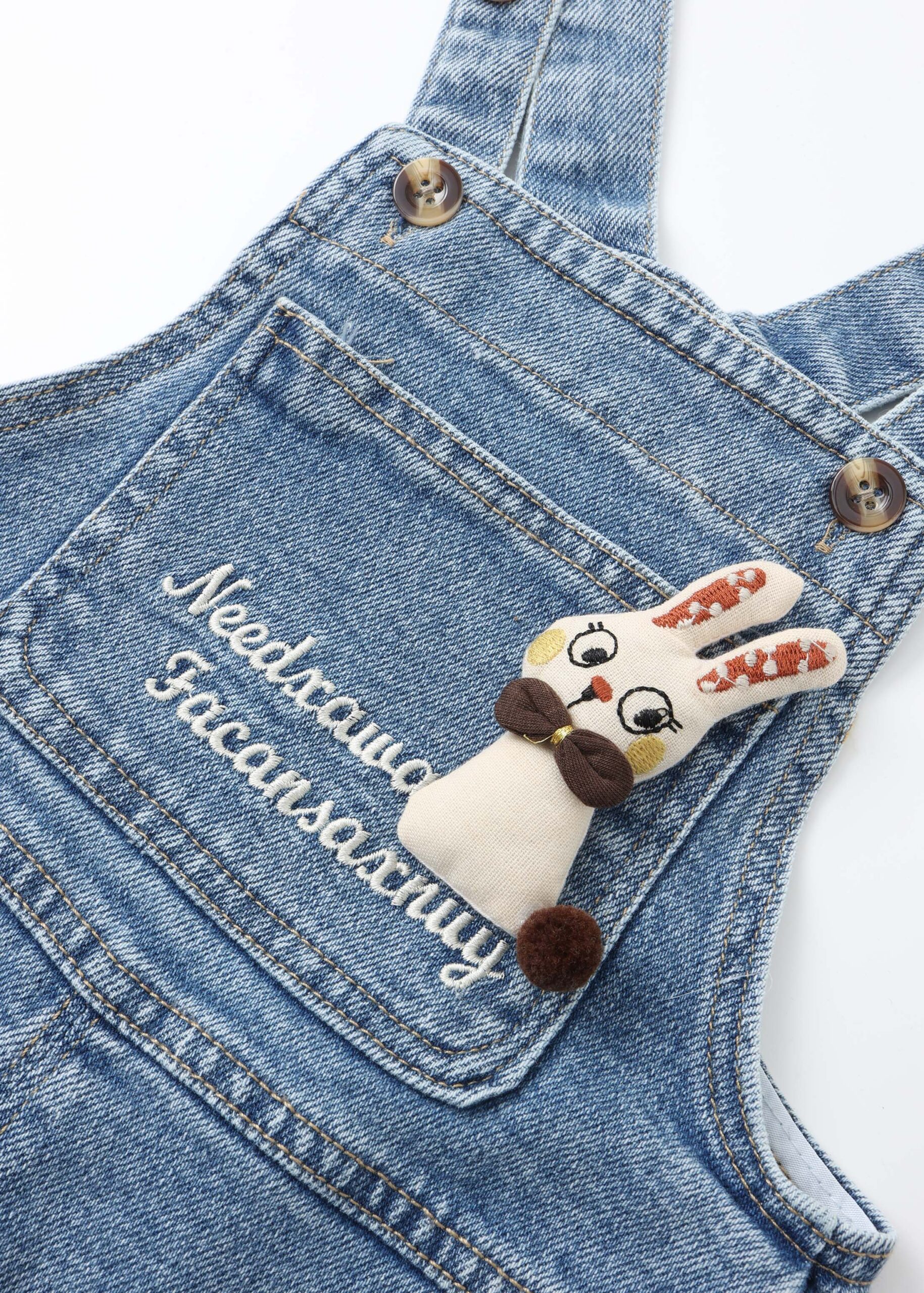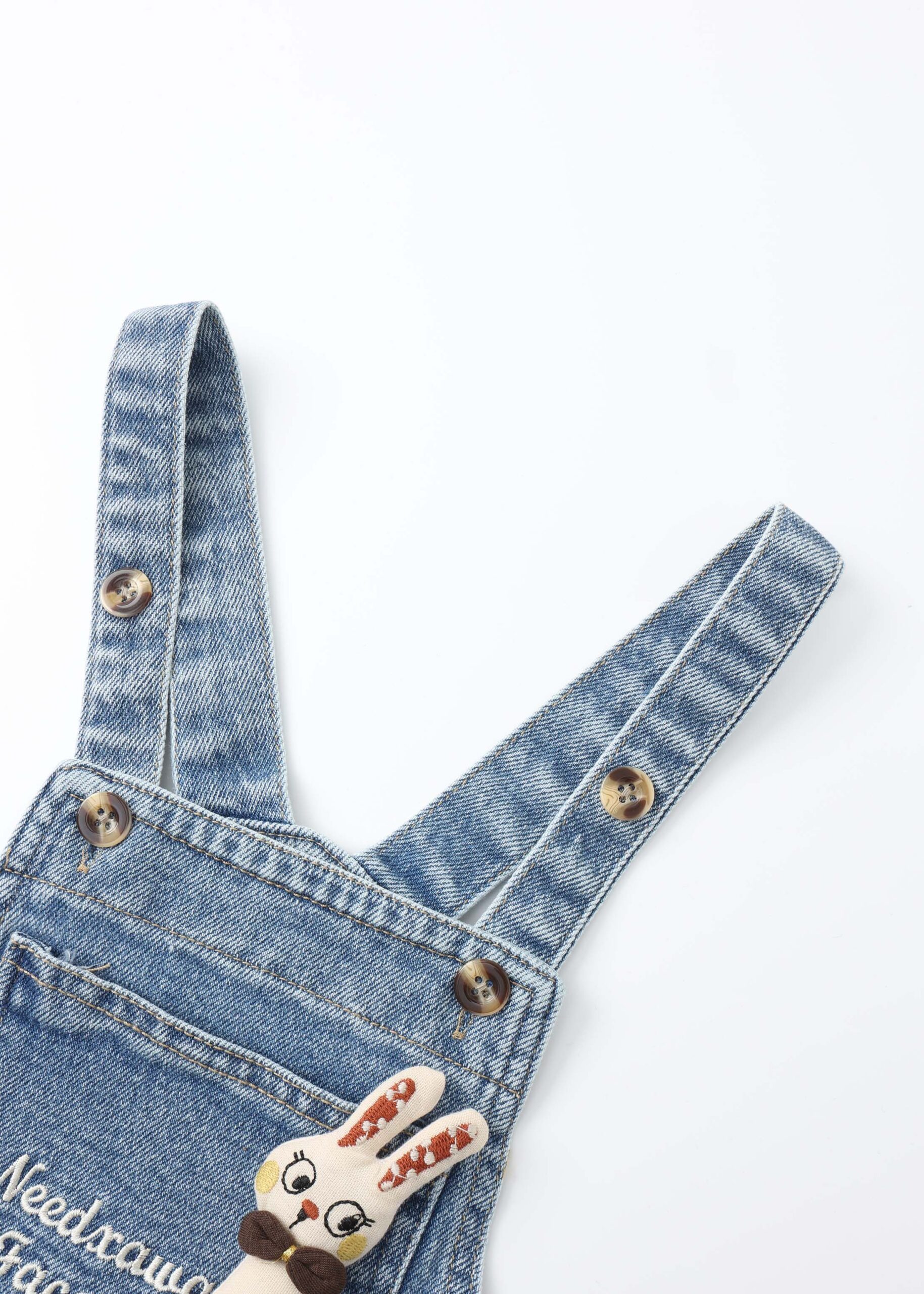 افرهول اطفال بيبي بناتي, جينز, ياقة مستقيمة, اشرطة كتف مع ازرار للاغلاق, جيب من الامام مزين بأرنب, جيب من الخلف,انيق وعصري