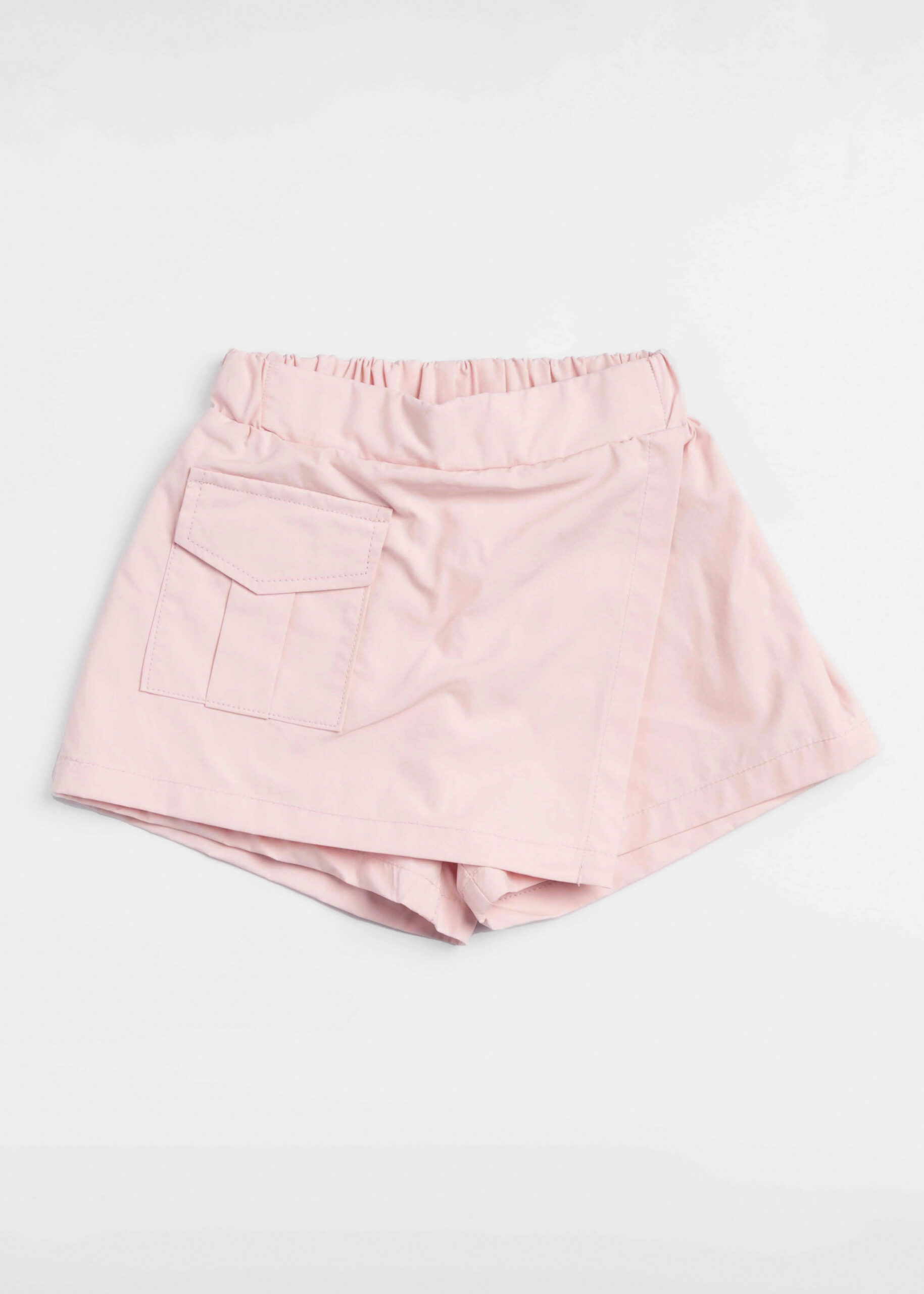 شورت اطفال بيبي بناتي, كتان, خصر مطاطي, تصميم ملتف للجانب مع جيب جانبي, انيق وعصري