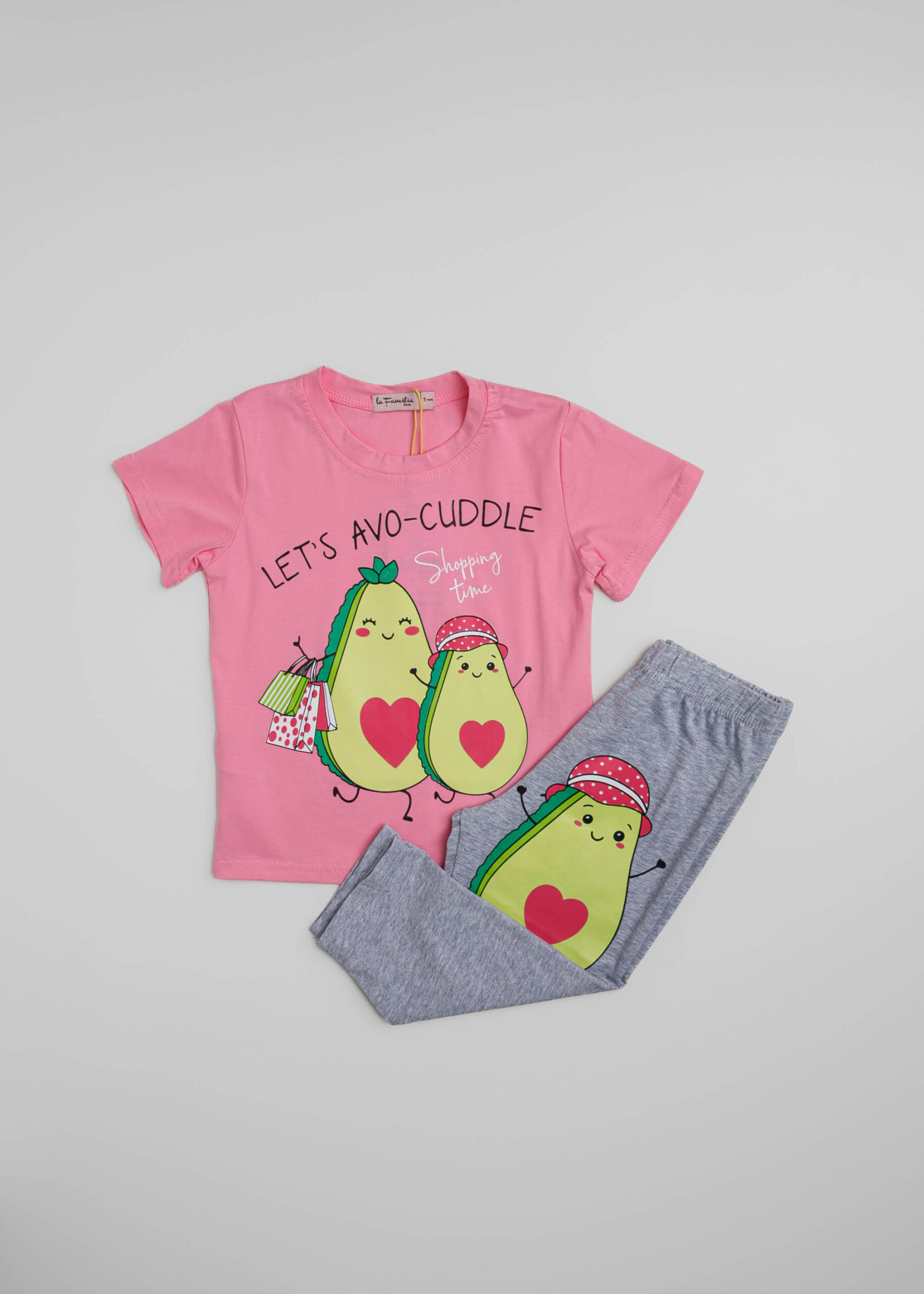 بيجامة أطفال بيبي بناتي, قطعتين, تيشيرت, طباعة “Let’s Avo-Cuddle” من الامام, ياقة مدورة, اكمام قصيرة, بنطلون, طباعة افوكادو, خصر مطاطي, انيقة ومريحة