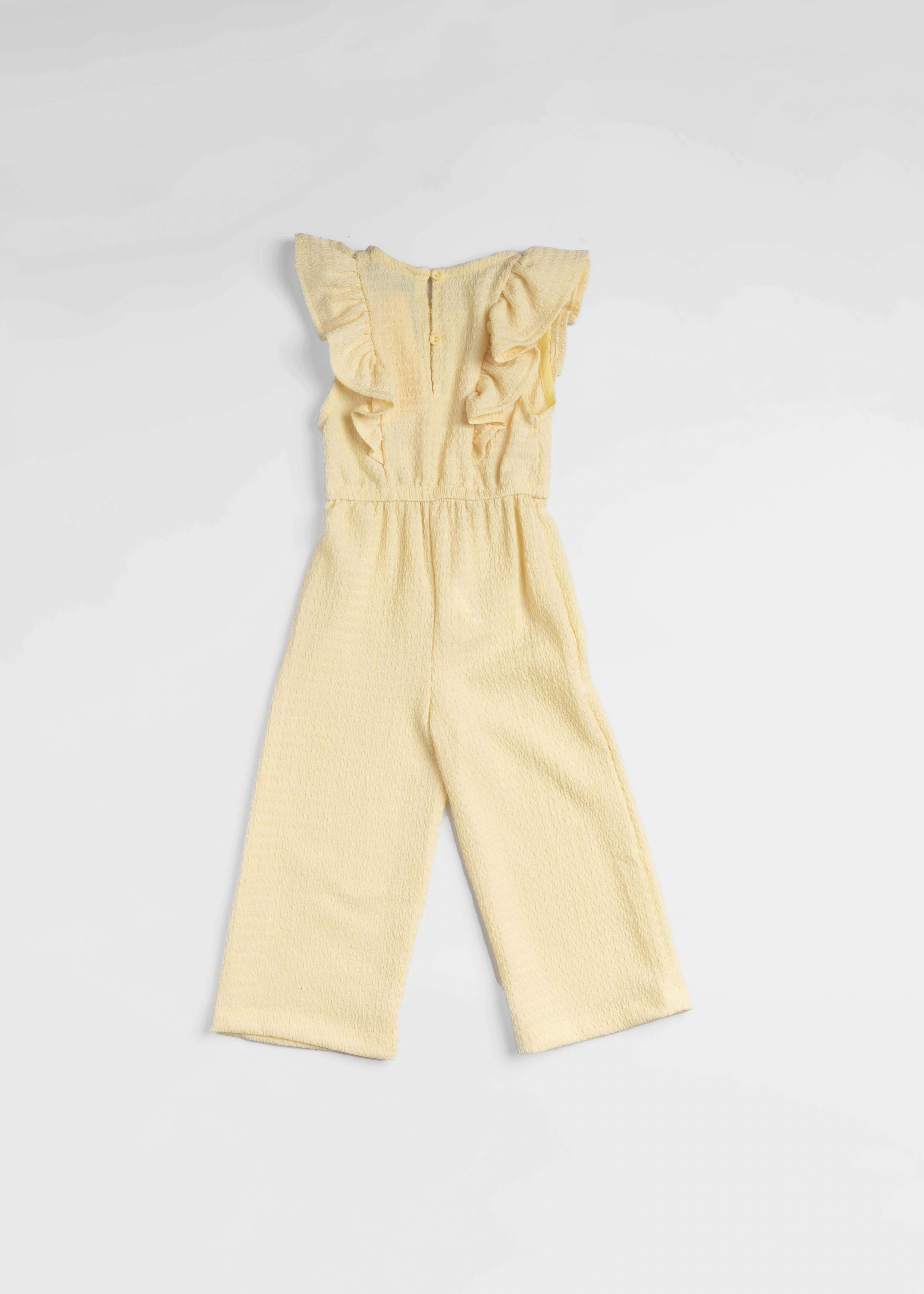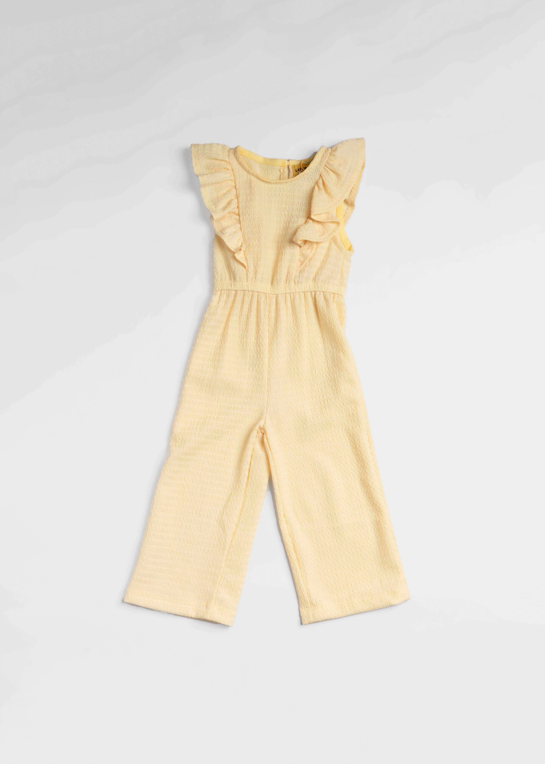 جمبسوت اطفال بيبي بناتي, بنقش, ياقة مدورة مع ازرار من الخلف للاغلاق, بدون اكمام مع اكتاف كشكش, خصر كسرات, بنطلون ساق واسعة, انيق وعصري