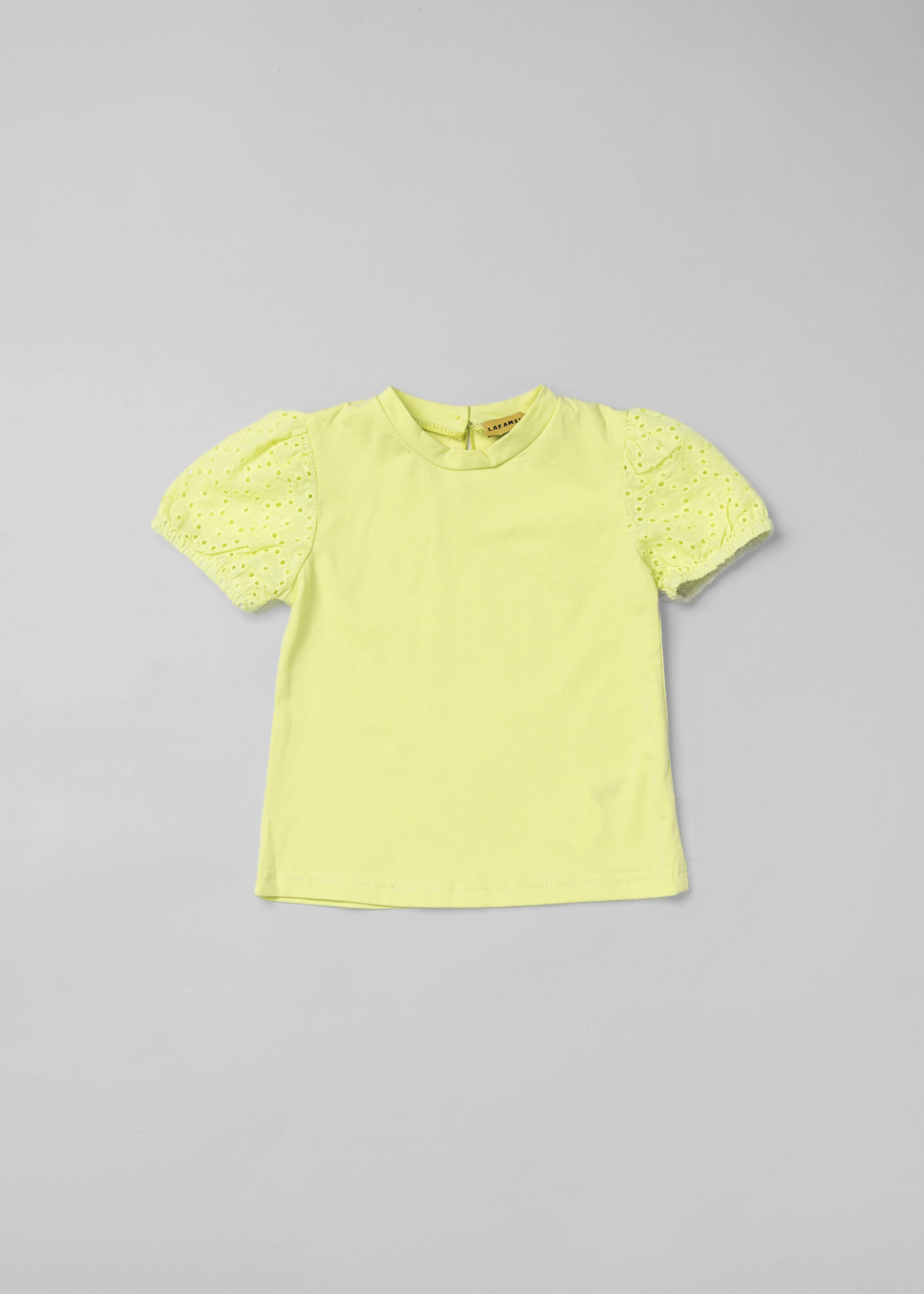 تيشيرت اطفال بيبي بناتي, سادة, ياقة مدورة مع زر من الخلف, اكمام قصيرة مزينة بتطريز, انيقة وعملية