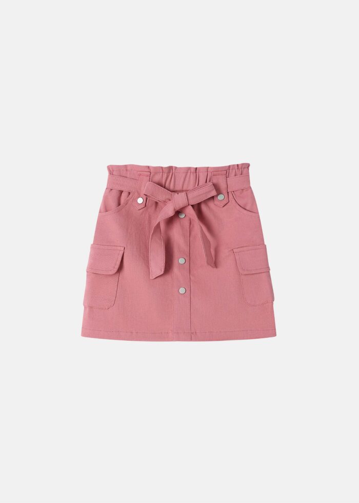 تنورة اطفال بيبي بناتي, قصيرة, خصر مطاطي مع حزام للربط, جيوب من الامام, جيوب جانبية, مزينة بازرار وهمية من الامام, انيقة وعصرية