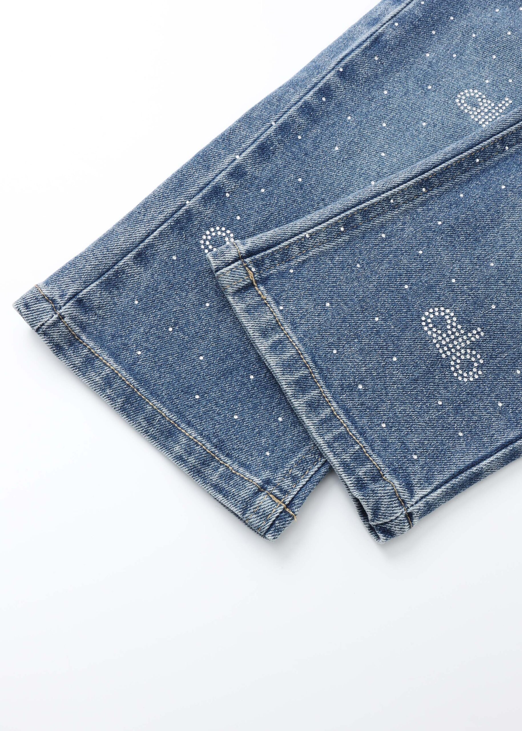 بنطلون اطفال بيبي بناتي, جينز, ساق مستقيمة, مزين بالستراس, خصر مطاطي, جيوب من الامام والخلف, انيق وعصري