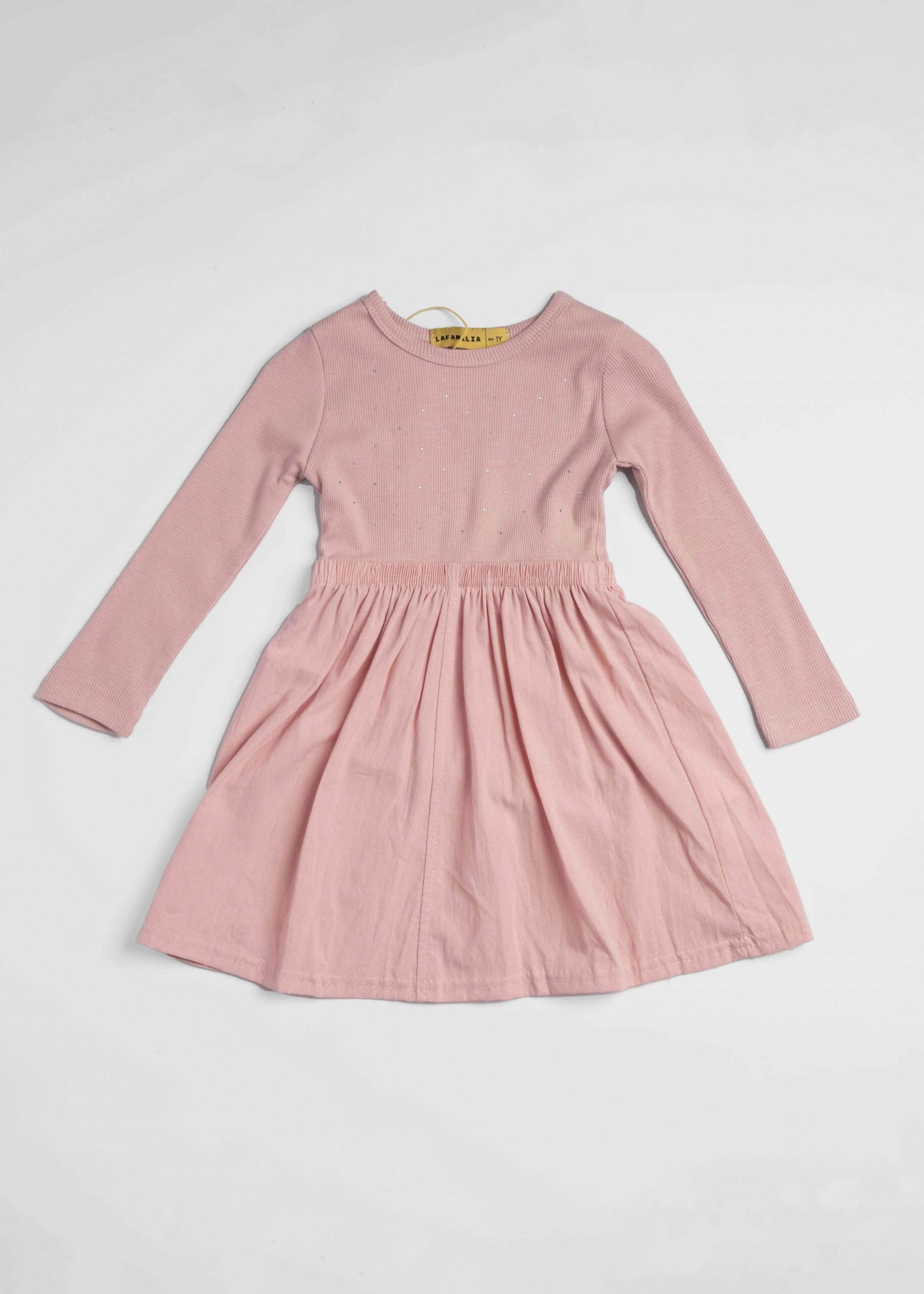 فستان اطفال بيبي بناتي, قصير, مزين بالستراس, ياقة مدورة, اكمام طويلة, خصر كسرات, انيق وعصري
