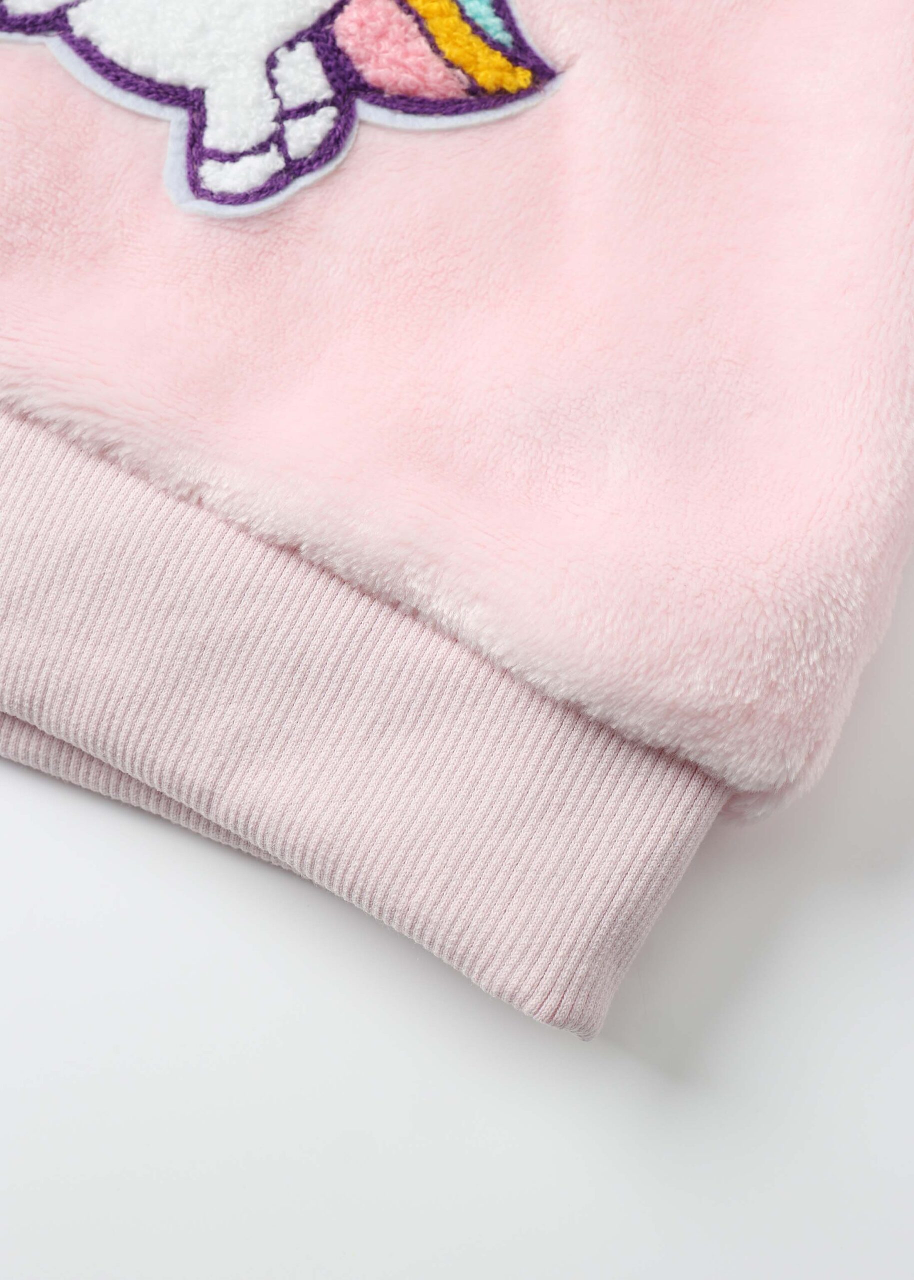Baby girl pajama, two-pieces, “Unicorn” printed, blouse, round neck, long sleeves, trouser, plain, elastic waist, elastic ankle, practical and comfortable