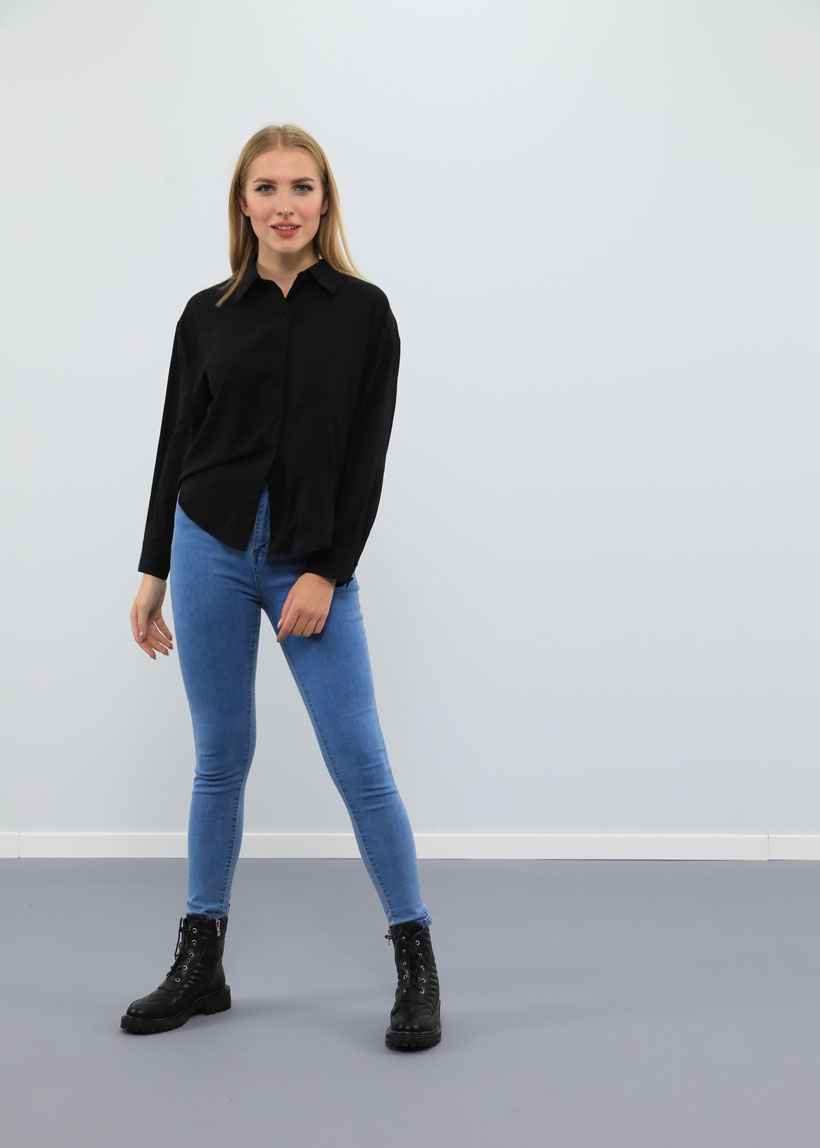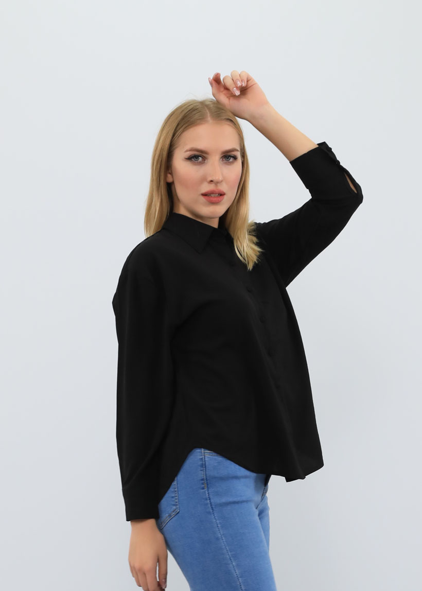 قميص ستاتي سادة بأزرار و لون موحد بتصميم عملي، مصنوع من 98% بوليستر و 2% سباندكس