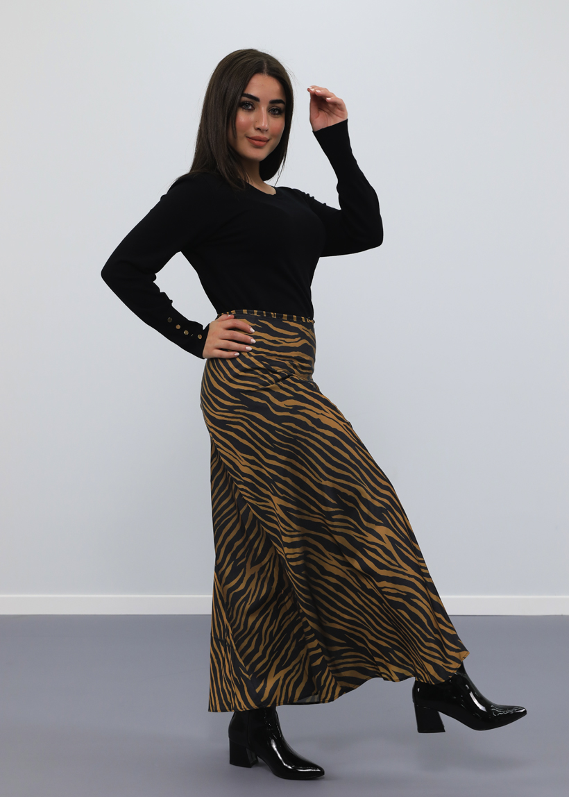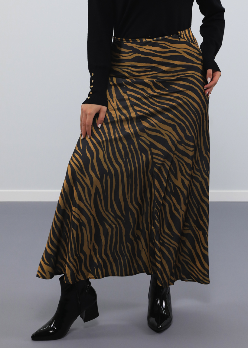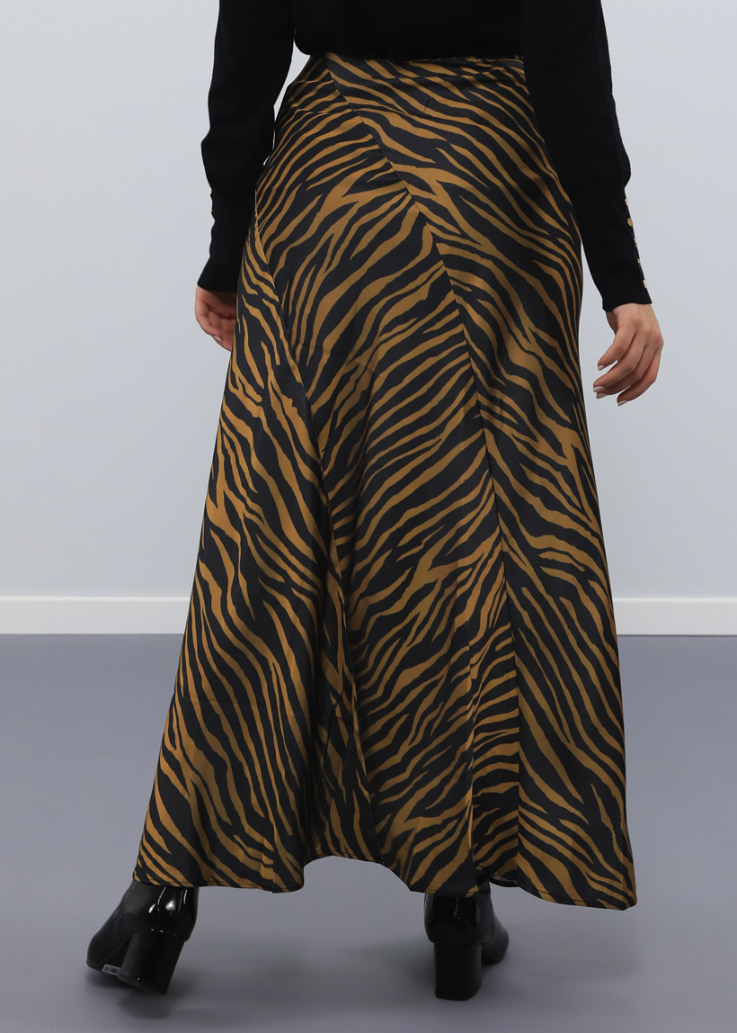 تنورة ستاتي ماكسي و فضفاضة بخصر عالي و بنقش الزيبرا مصنوعة من 100% بوليستر