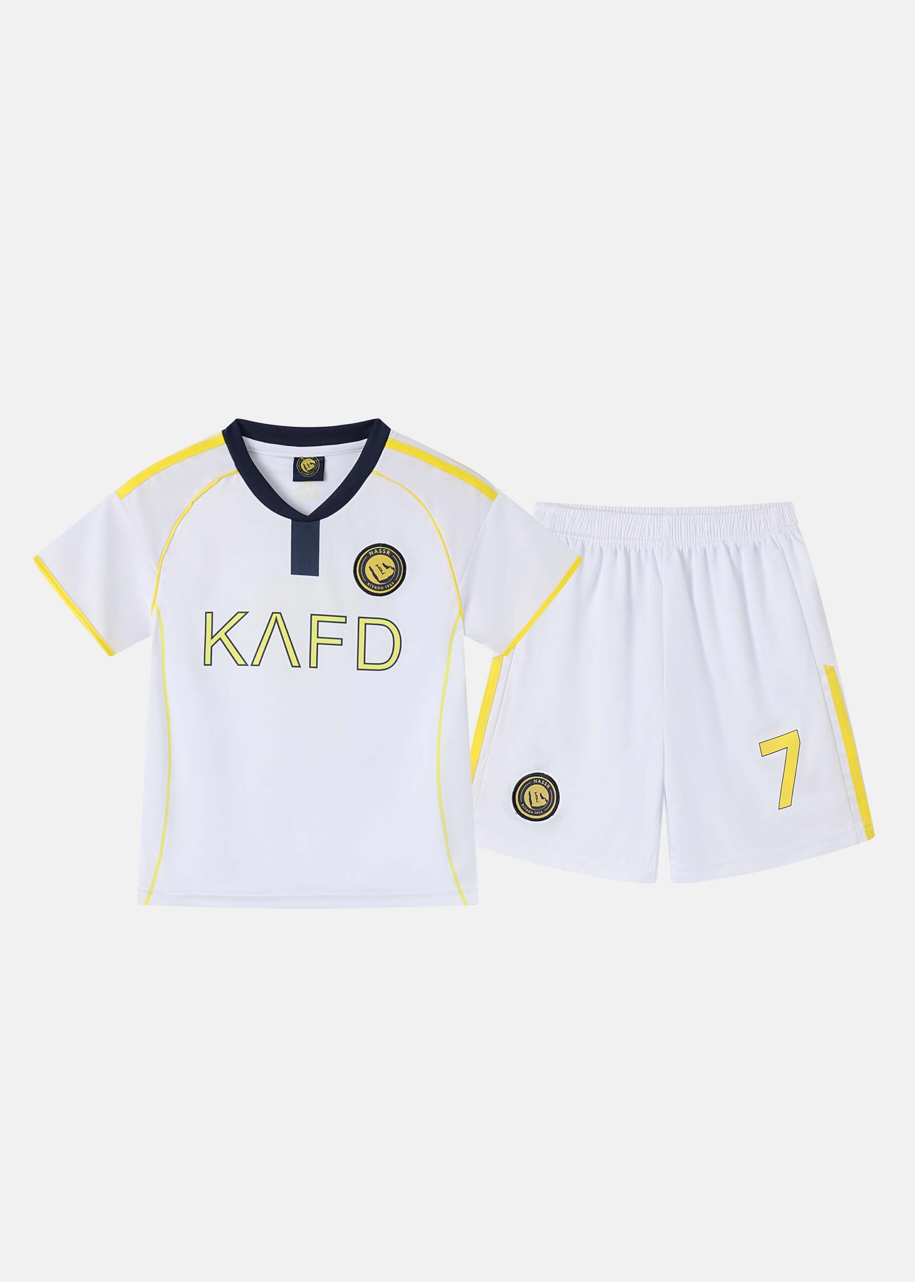 طقم اطفال, فريق النصر, “رونالدو 7”, تيشيرت, ياقة مدورة, اكمام قصيرة, شورت, خصر مطاطي, مريحة وعملية
