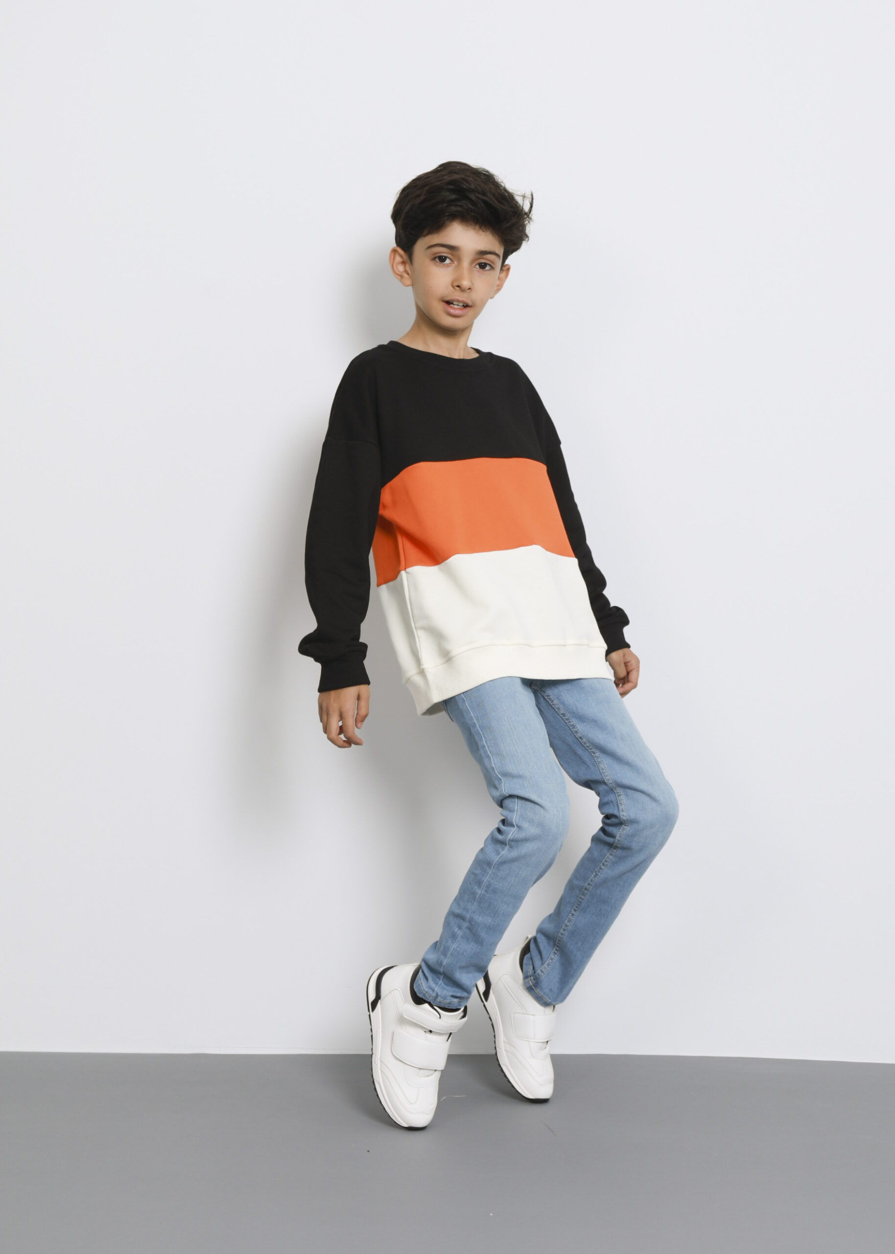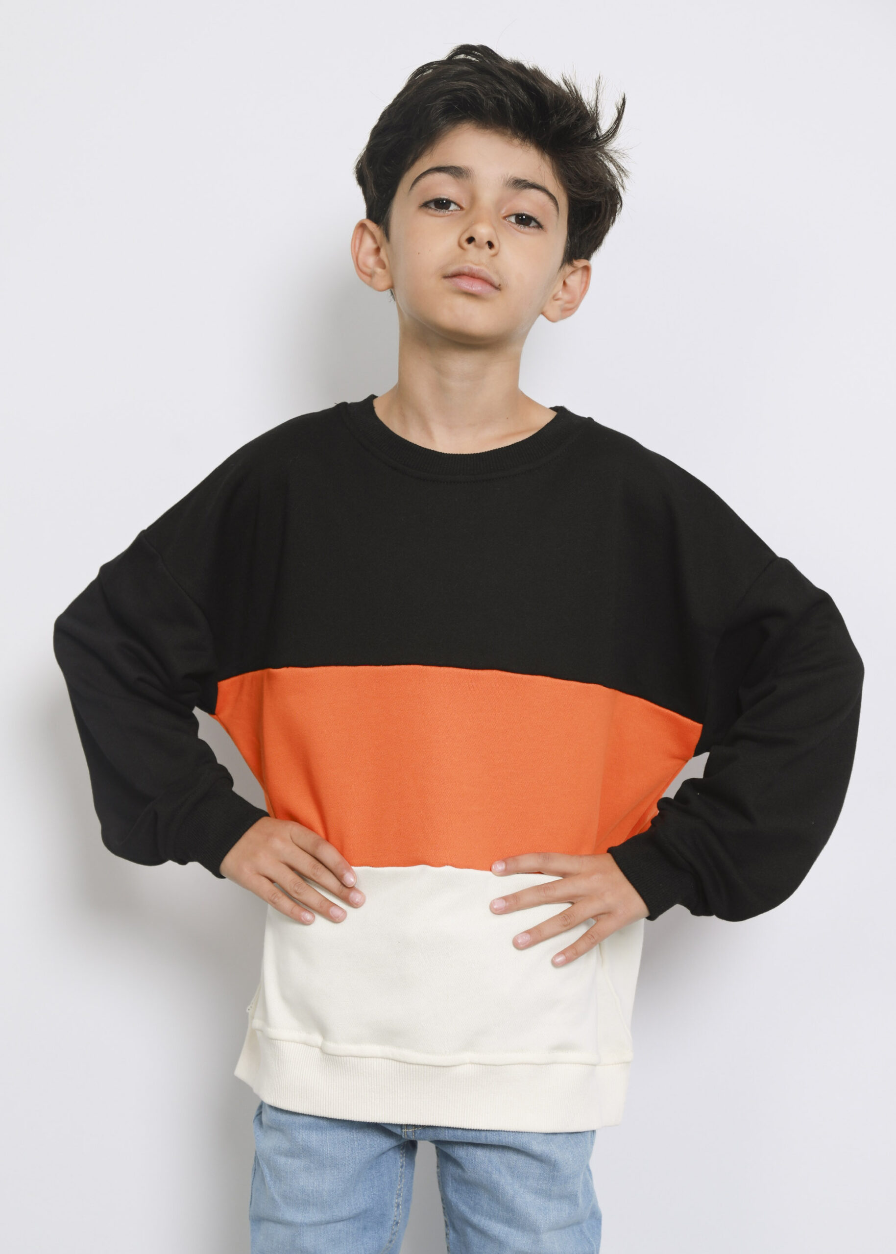بلوزة أطفال ولادي, ثلاثة ألوان, سادة, أكمام طويلة مع معصم ضيق, ياقة مدورة, مريح وعملي, 40% قطن 60% بوليستر
