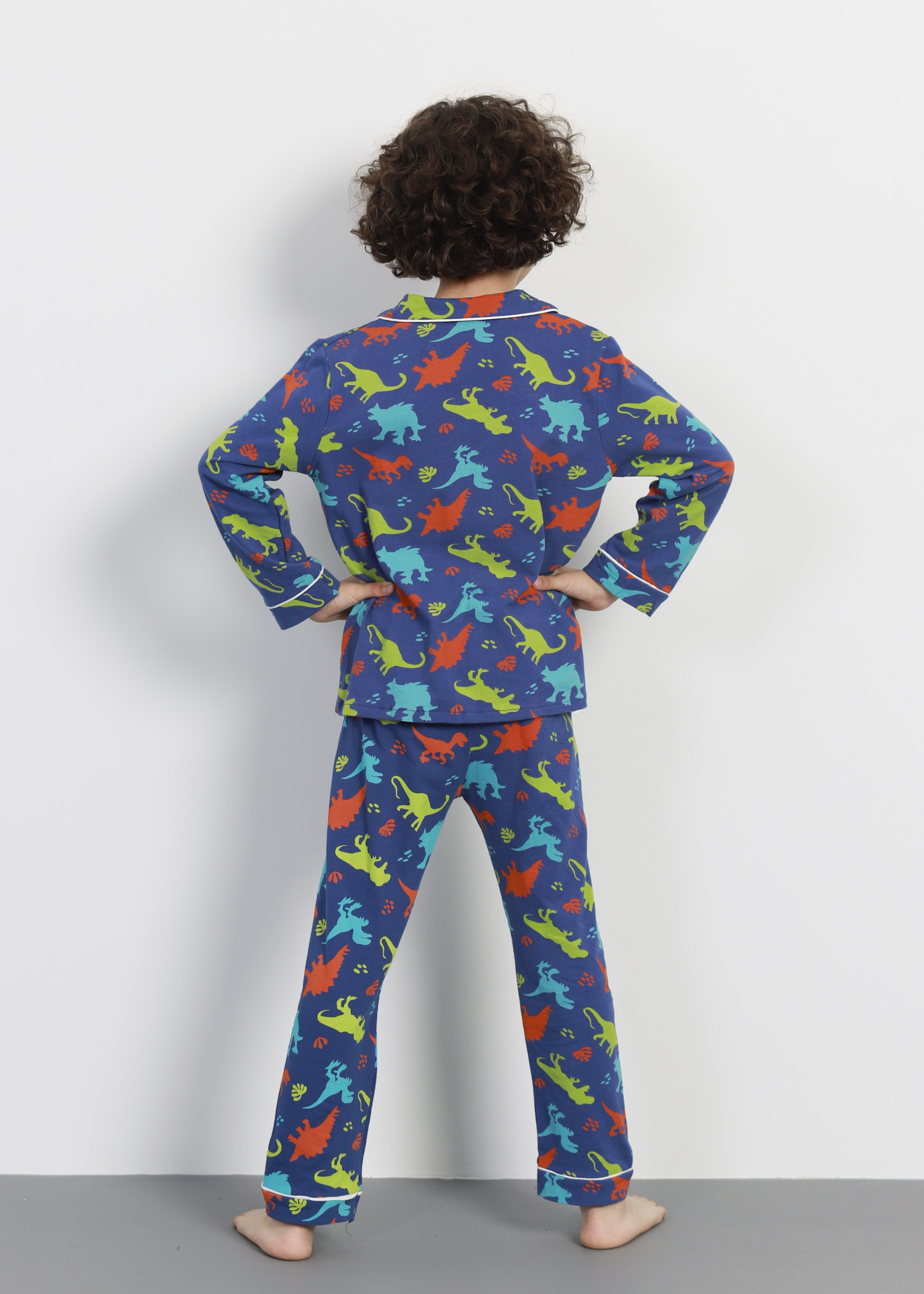 بيجامة أطفال ولادي قطعتين بطباعة رسومات الديناصورات