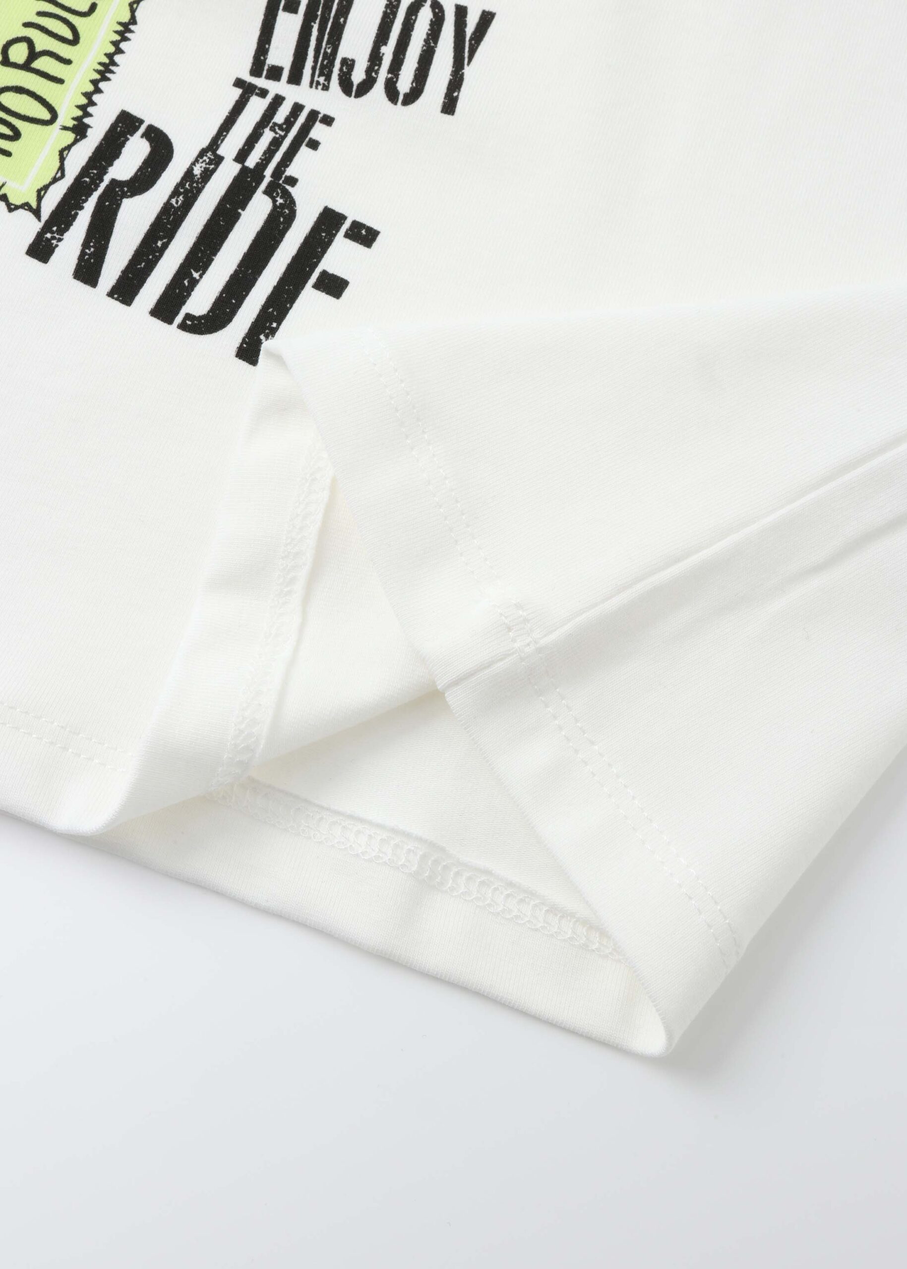 بلوزة اطفال ولادي, طباعة تصميم من الامام “Keep Rolling, Enjoy the Ride”, ياقة مدورة, اكمام طبقات بتصميم اكمام قصيرة مدمجة بأكمام طويلة من الاسفل, انيقة وعصرية