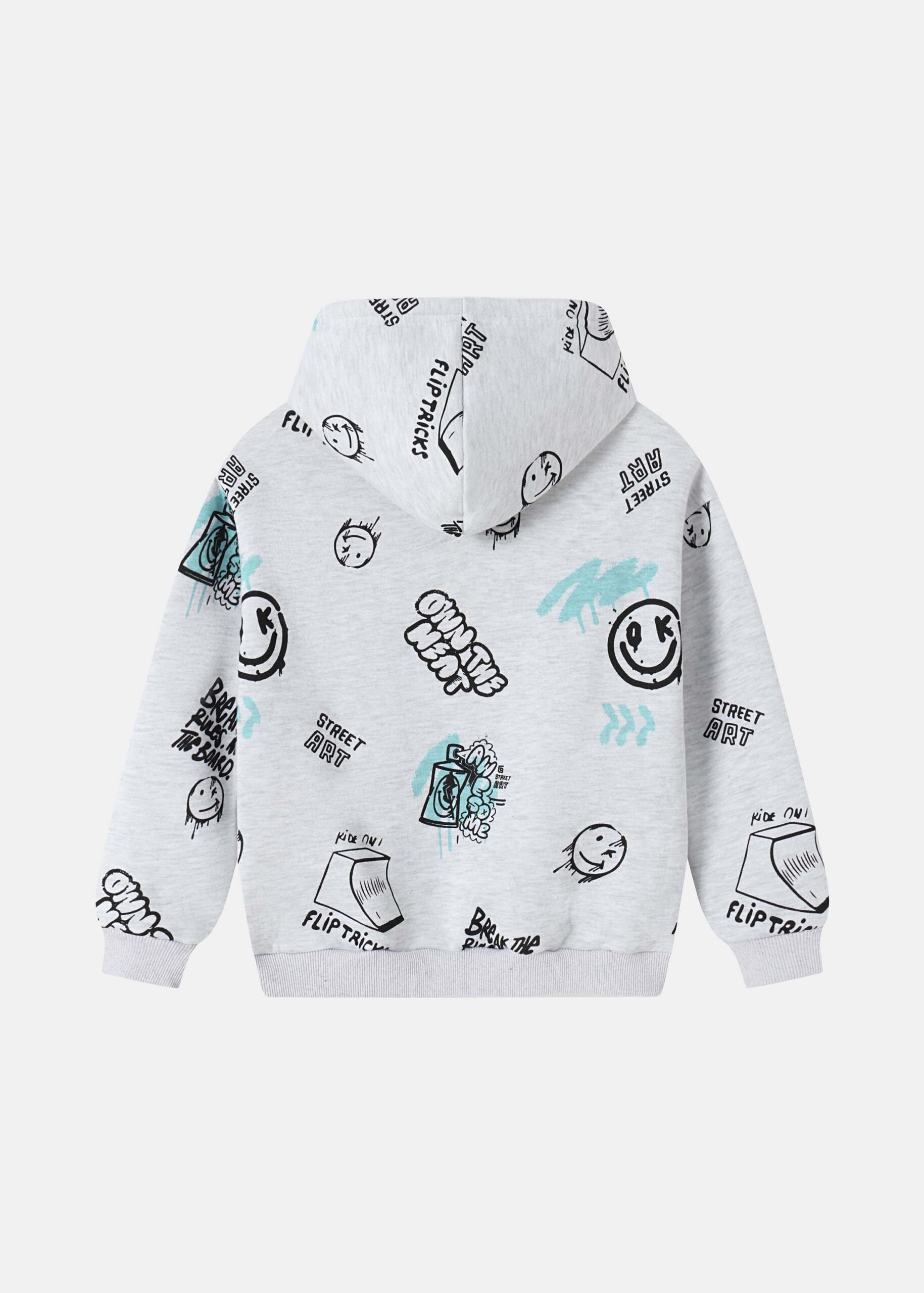 Kids boy hoodie, drawings printed, hood, long sleeves with tight cuff, warm and unique