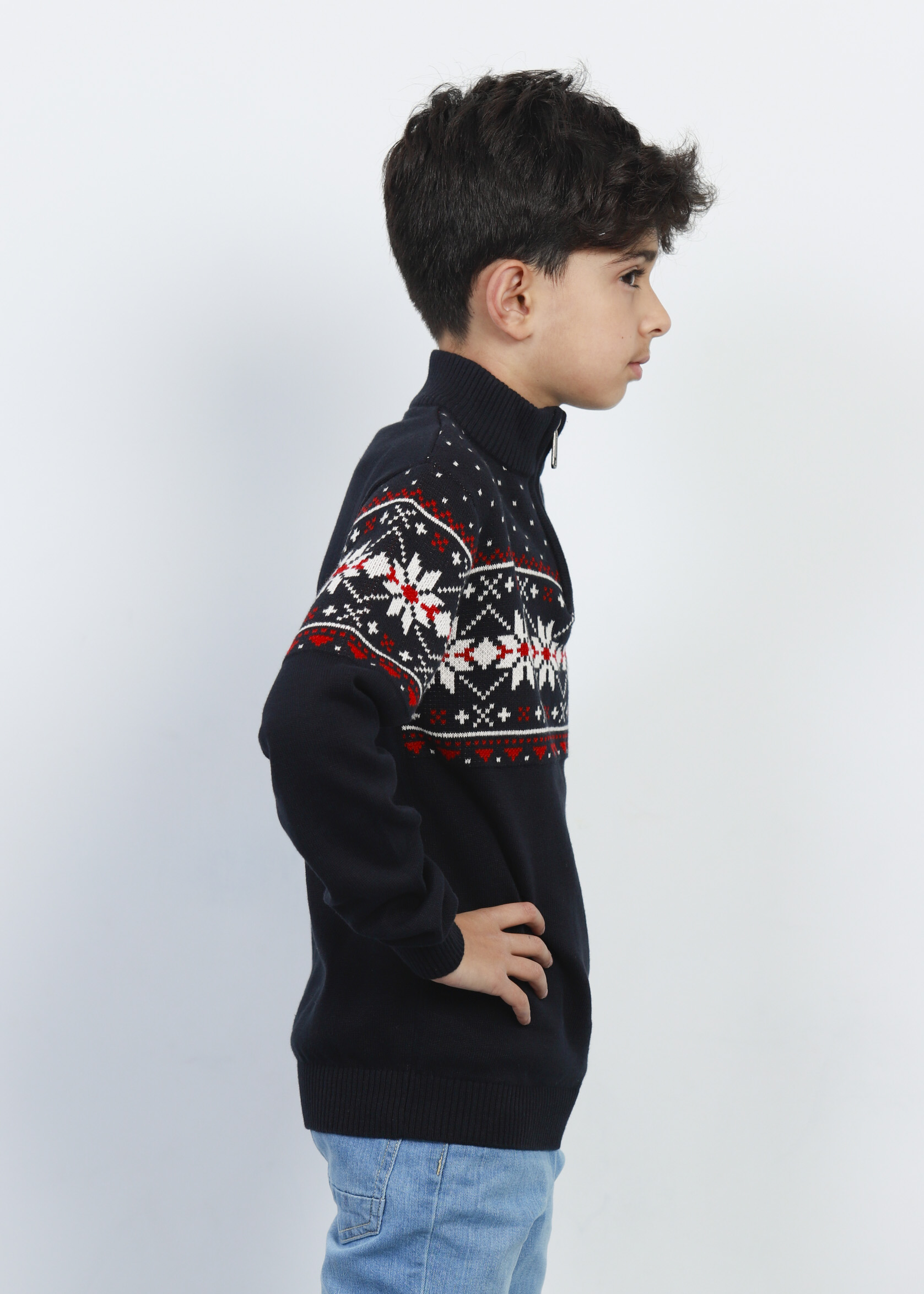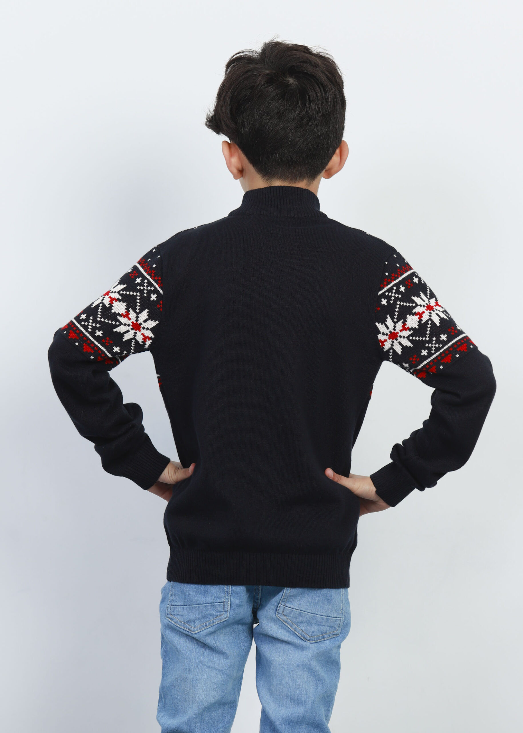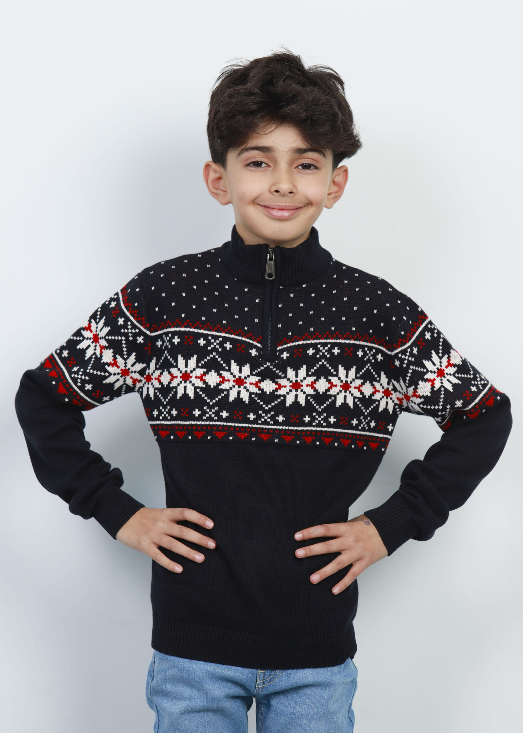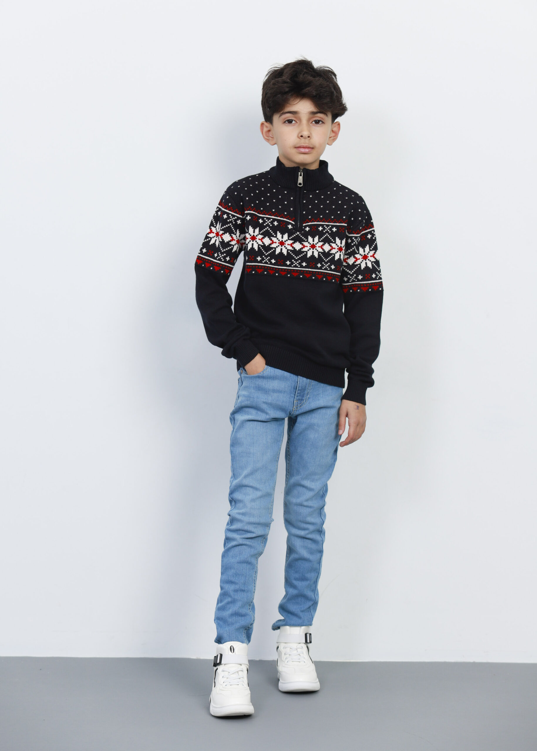 بلوزة اطفال ولادي, تصميم محبوك, مزخرف, اكمام طويلة, ياقة مرتفعة مع سحاب امامي للاغلاق, انيقة ودافئة