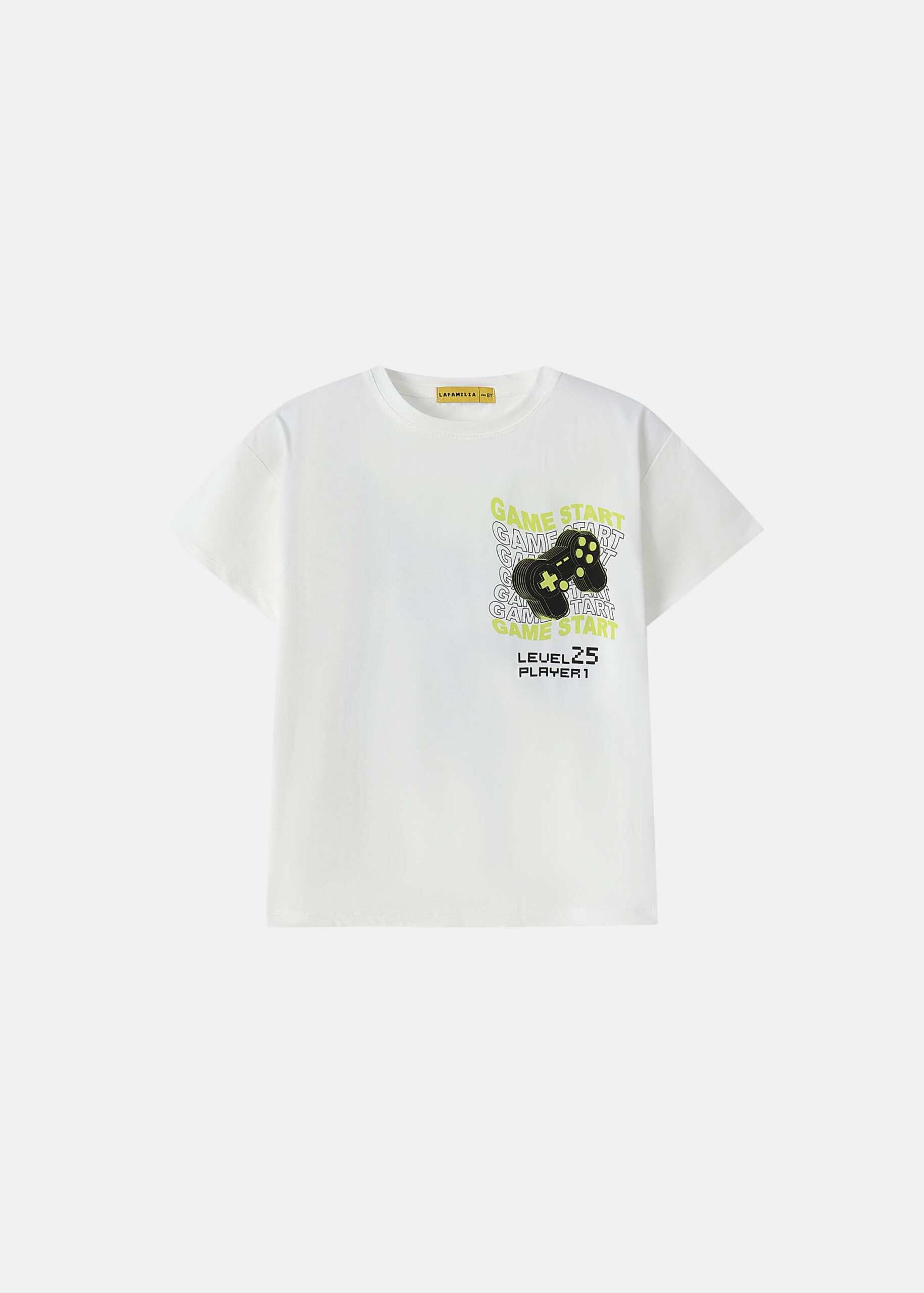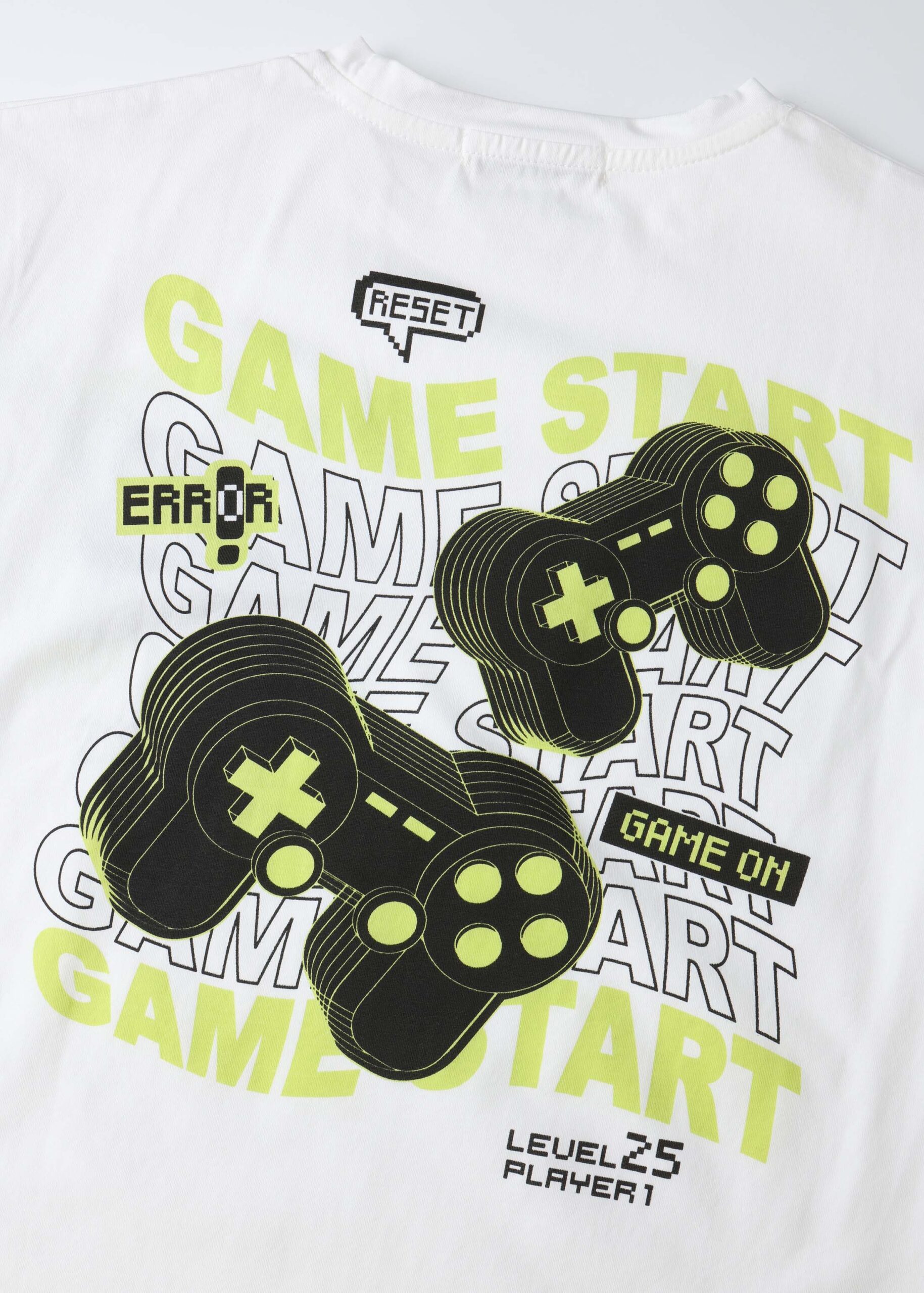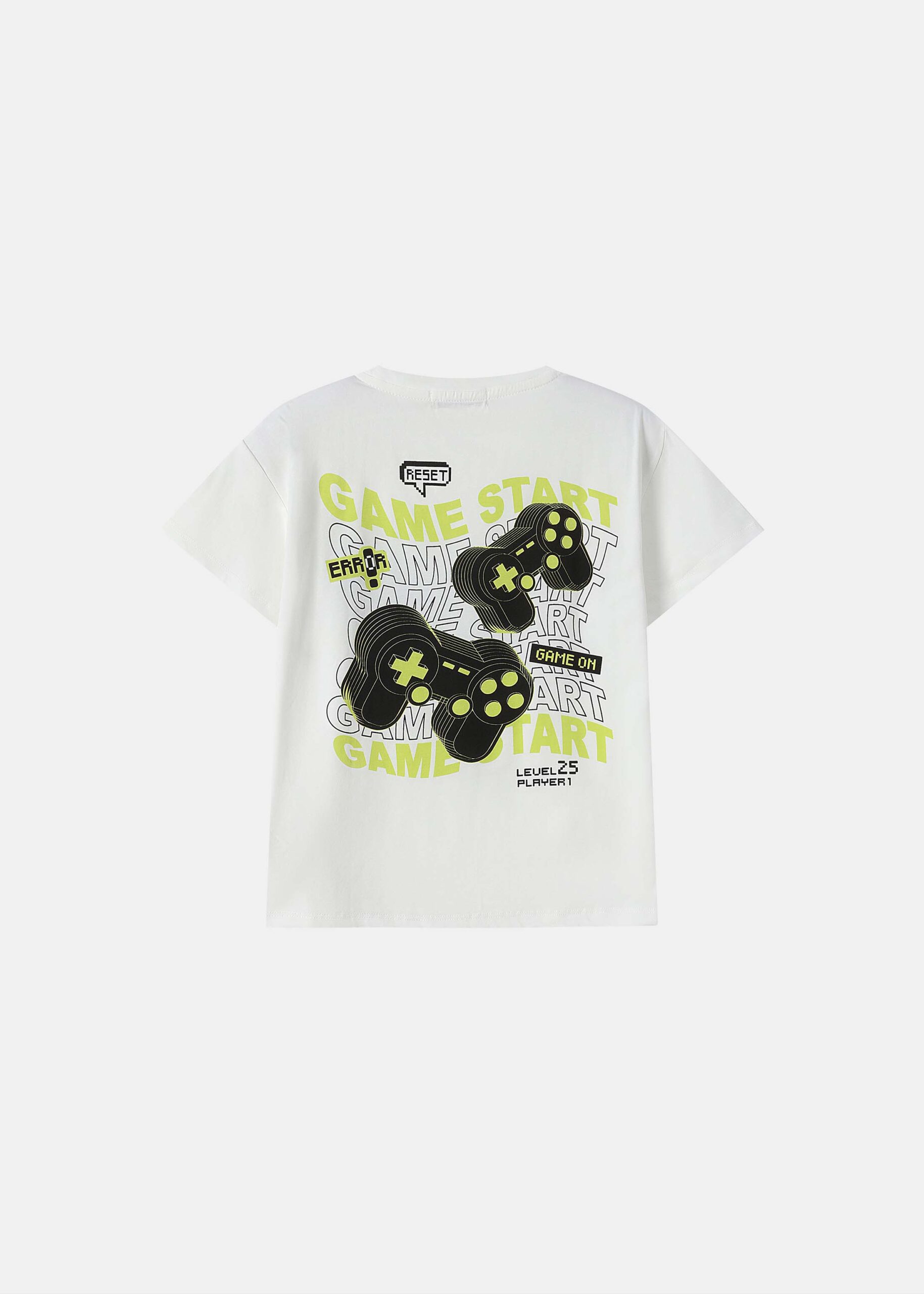 تيشيرت أطفال ولادي, رسومات “Game Start” مطبوعة من الامام والخلف, ياقة مدورة, اكمام قصيرة, انيقة وعملية