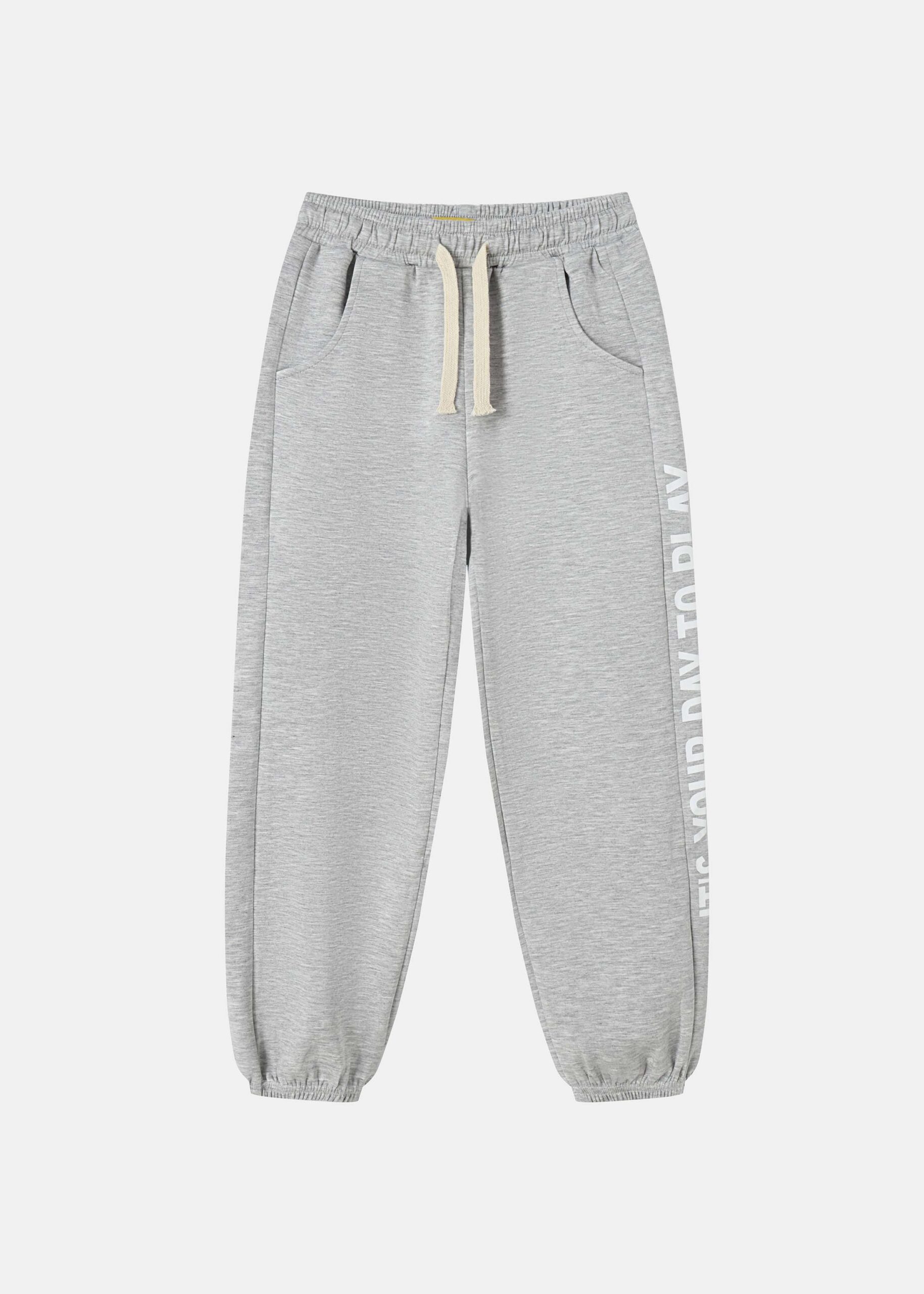 Kids boy trouser, sport, “It’s Your Day to Play” printed, elastic waist with front tie, front pockets, elastic ankle, comfortable and practical