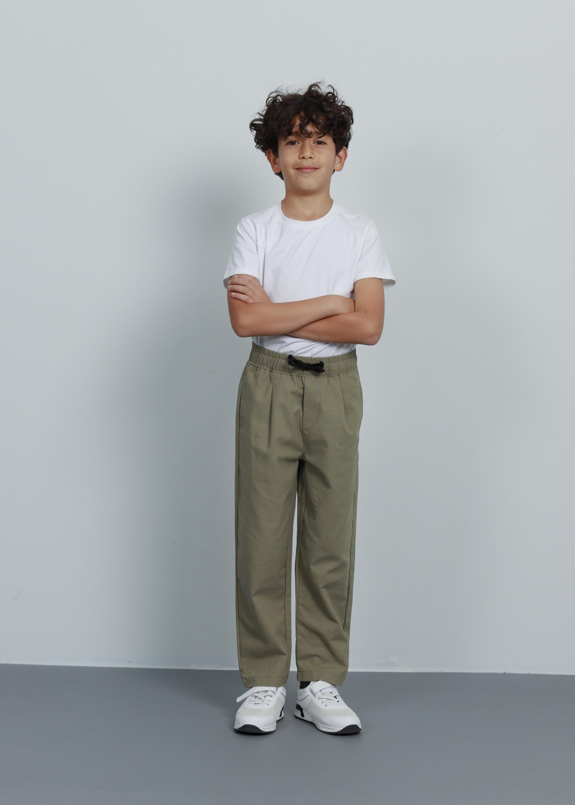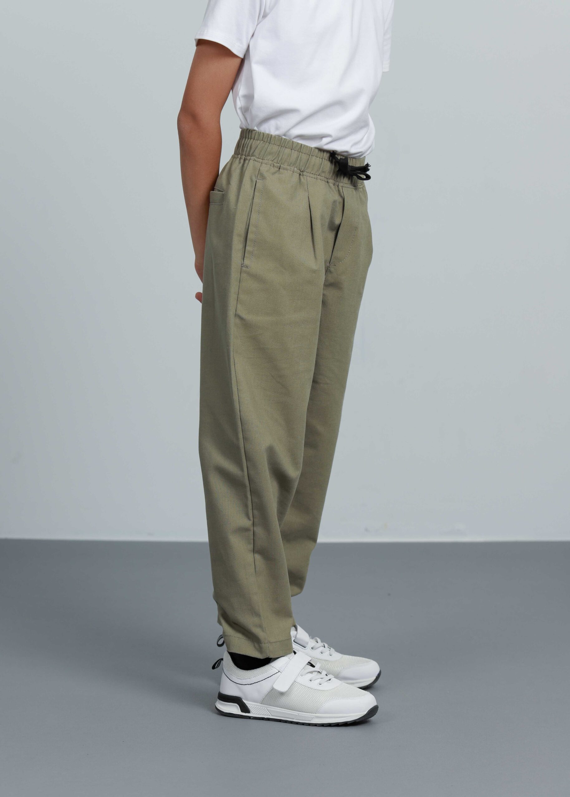 بنطلون اطفال ولادي, كتان, سادة, خصر مطاطي مع حبل للربط من الامام, جيوب امامية وخلفية, انيق وعصري, 30% كتان 30% قطن 30% بوليستر 10% ريون