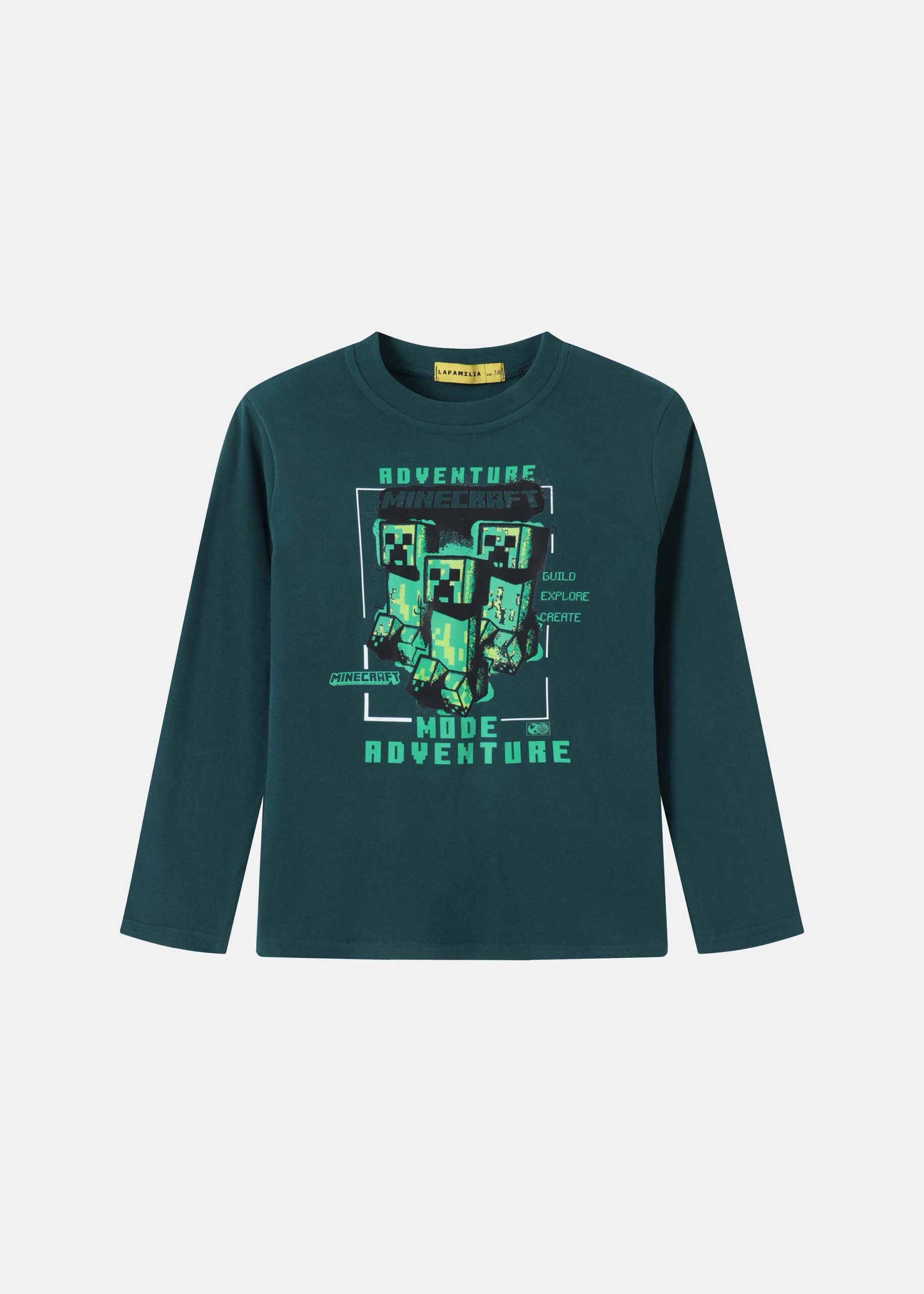 Kids boy pajama, two-pieces, “Minecraft” printed, blouse, round neck, long sleeves, trouser, plain, elastic waist, elastic ankle, practical and comfortable