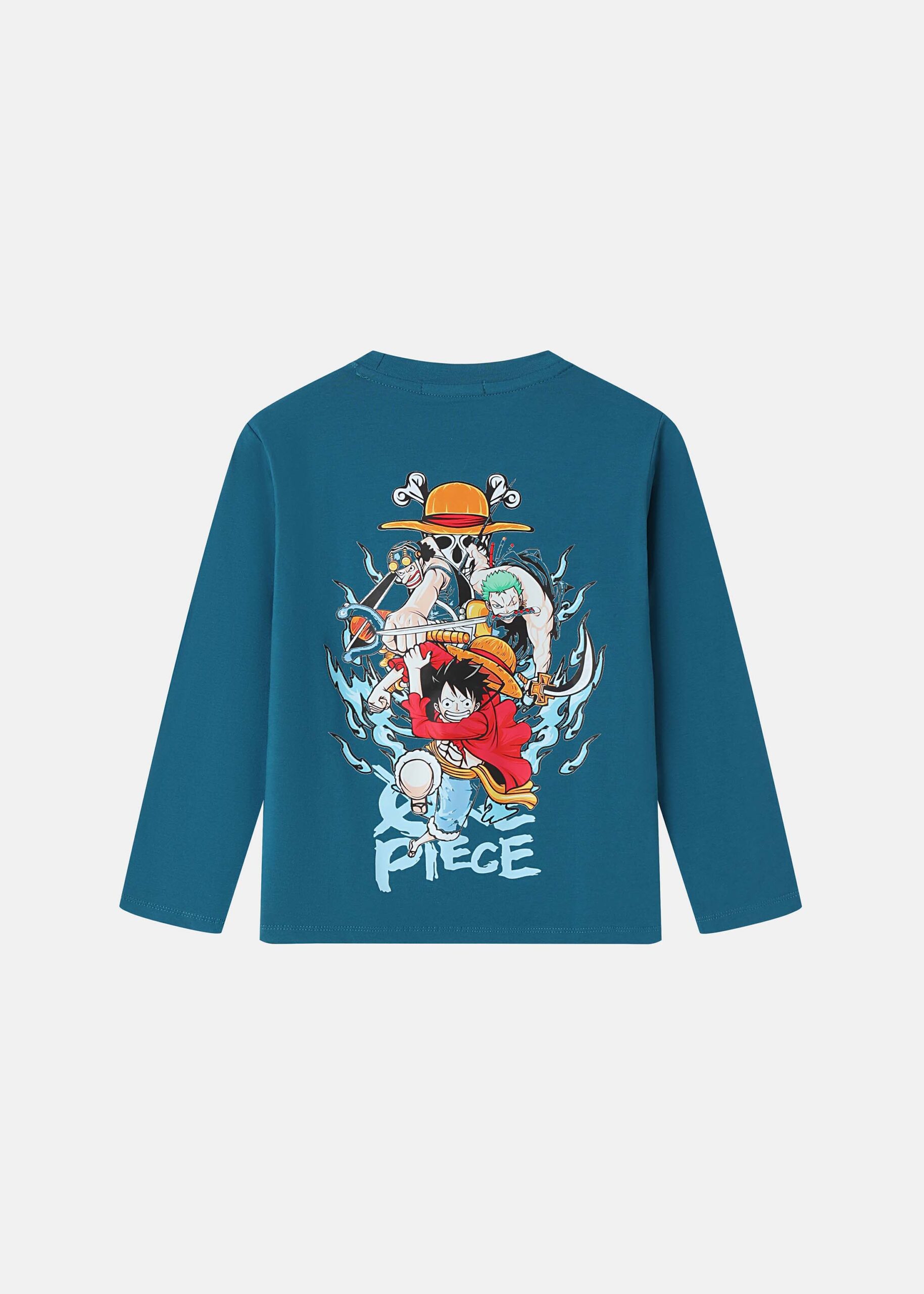 بلوزة اطفال ولادي, طباعة تصميم “One Piece” من الامام والخلف, ياقة مدورة, اكمام طويلة, انيقة وعملية