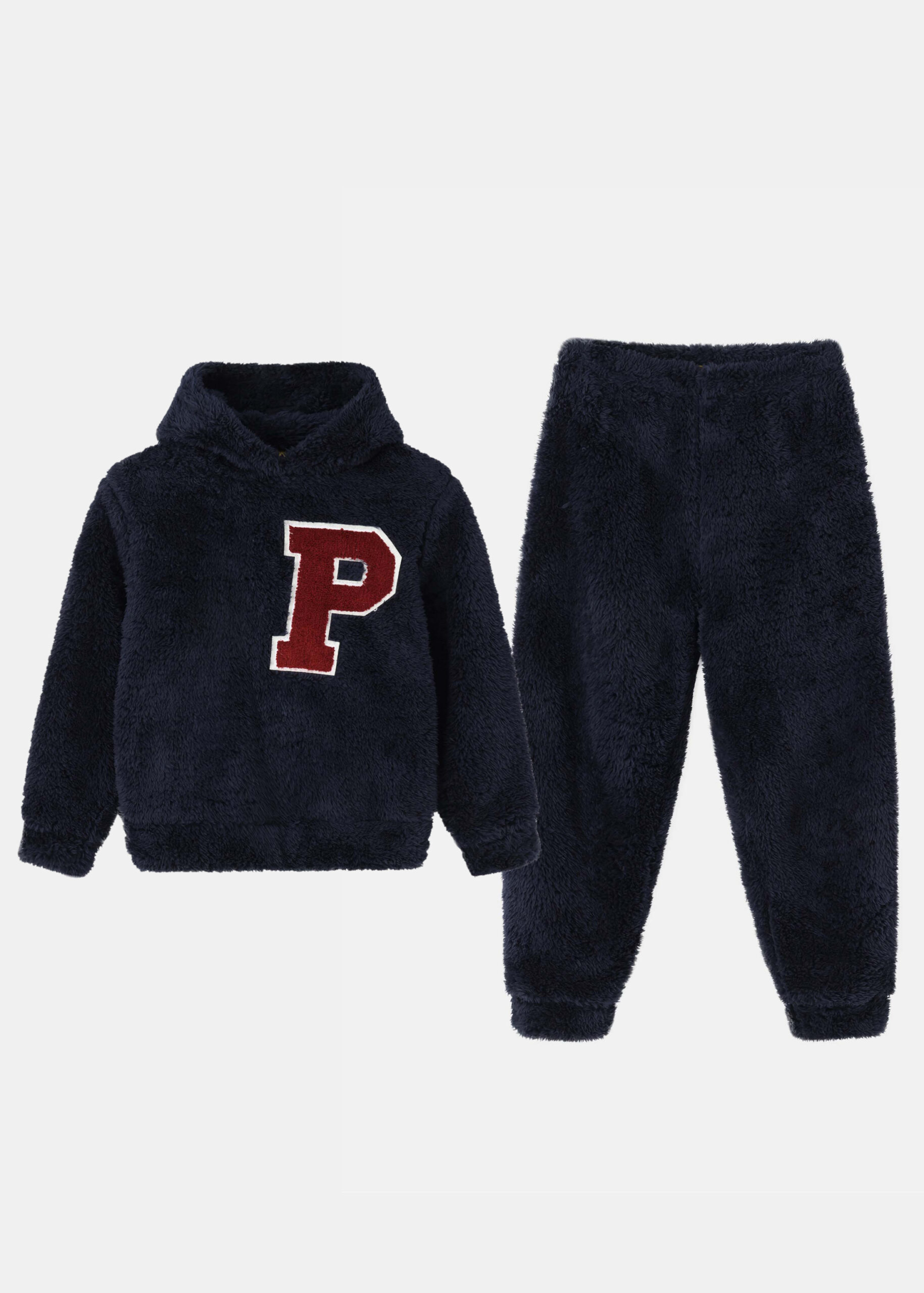 بيجامة أطفال ولادي, قطعتين, طباعة “P”, هودي, طاقية, اكمام طويلة, بنطلون, سادة, خصر مطاطي, كاحل مطاطي, مريحة وعملية
