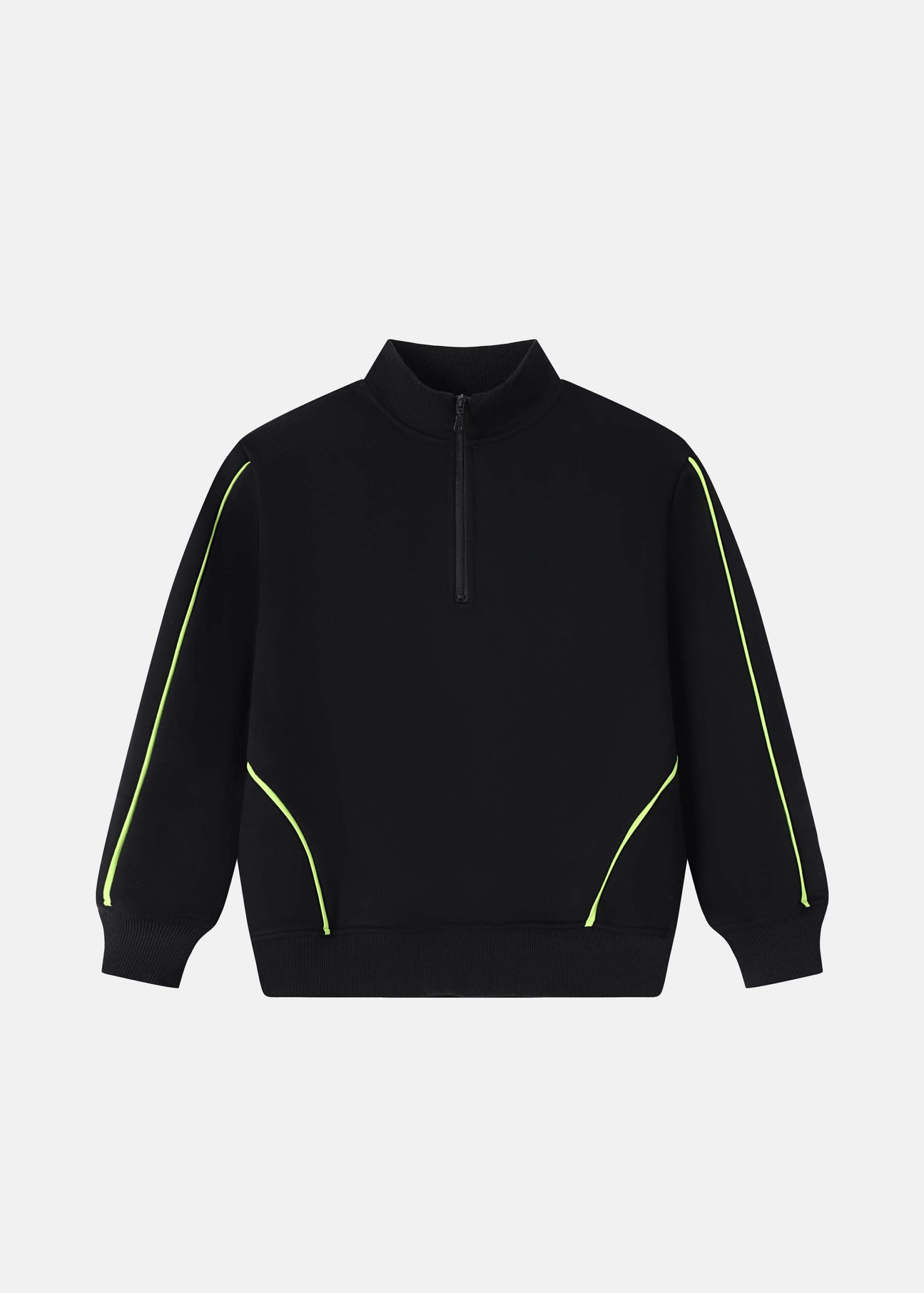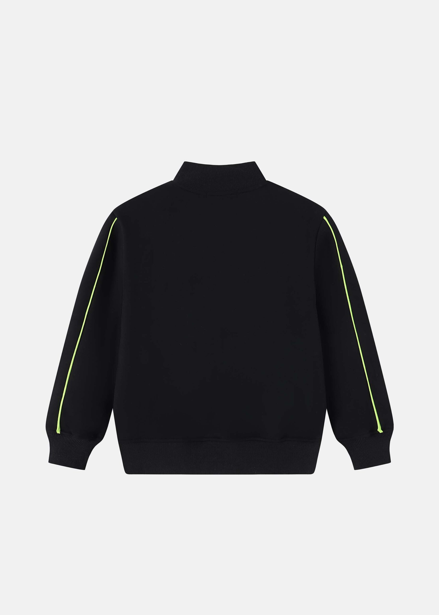 Kids boy blouse, plain, high neck with front zipper closure, long sleeves with tight cuff, neon lines decor, unique and modern