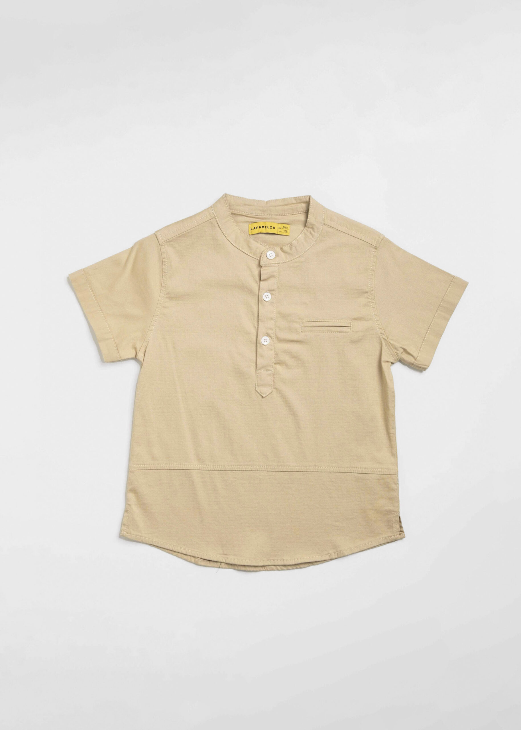 قميص اطفال ولادي, سادة, ياقة مدورة مع ازرار من الامام للاغلاق, اكمام قصيرة, جيب من الامام, انيق وعملي
