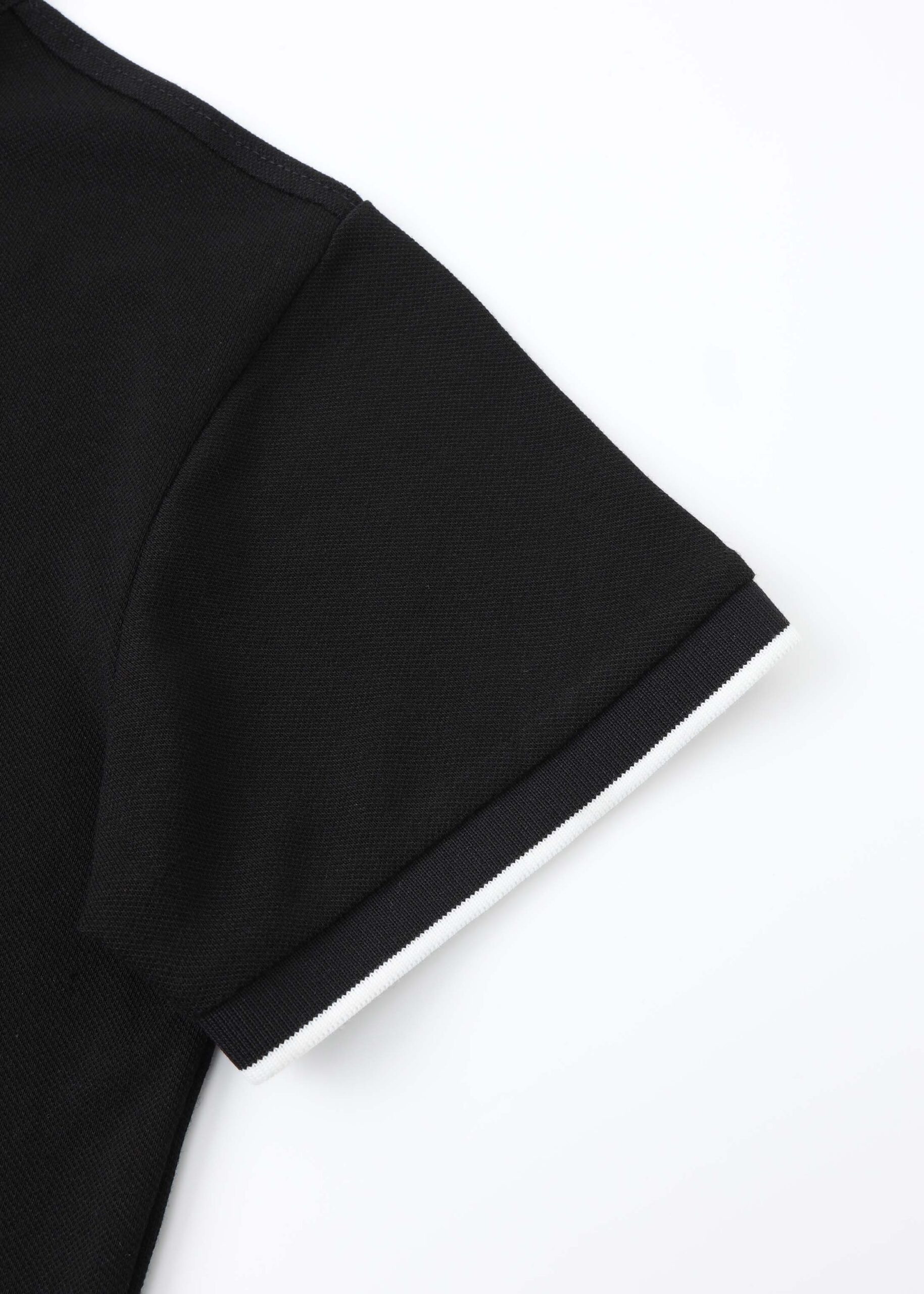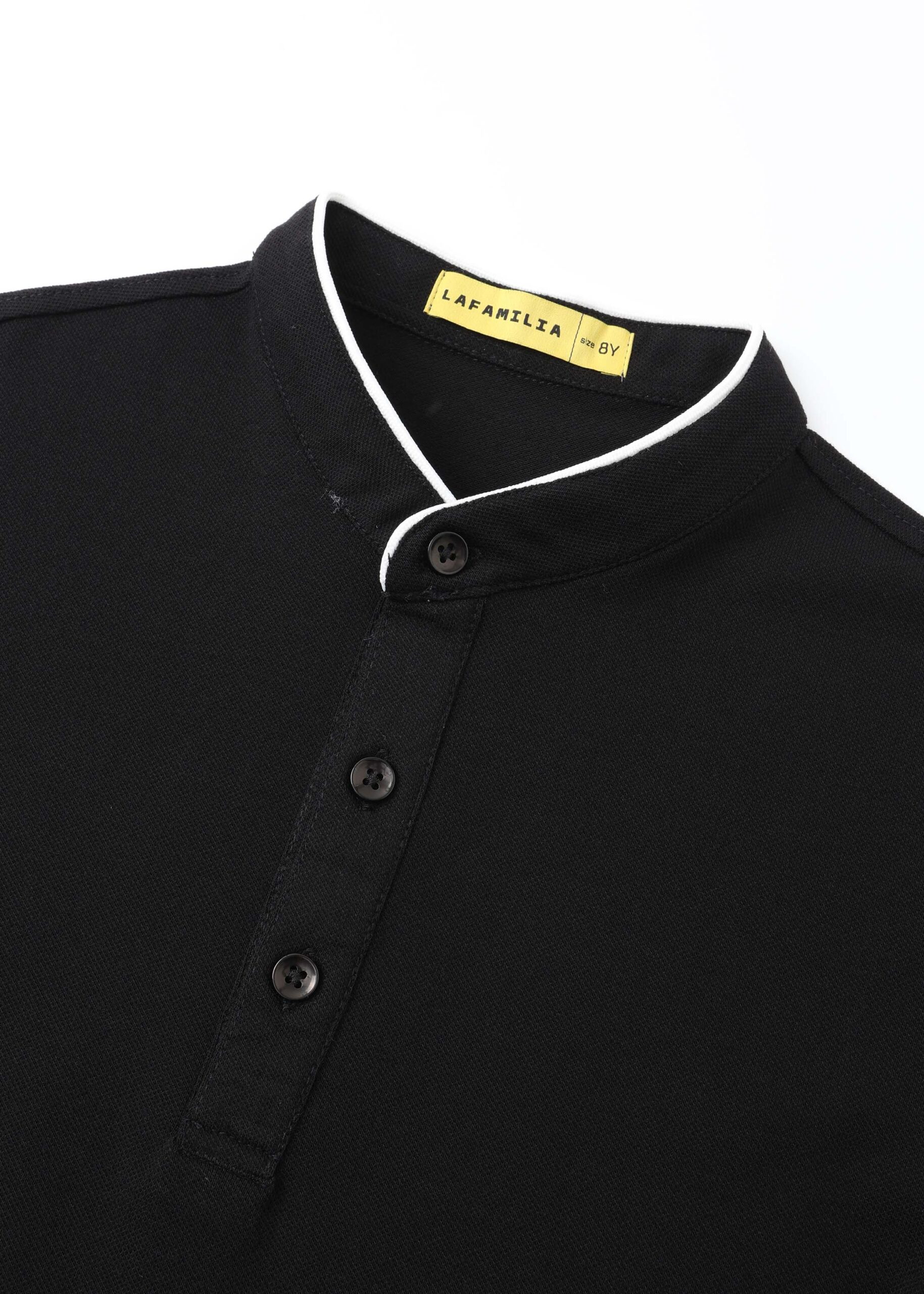 بلوزة اطفال ولادي, سادة, ياقة مستقيمة مع ازرار من الامام, اكمام قصيرة, خطوط على حواف الياقة ونهاية الاكمام, انيقة وعصرية