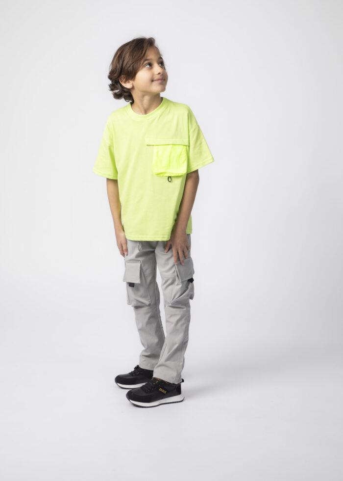 تيشيرت اطفال ولادي, سادة, تصميم جيب من الامام, ياقة مدورة, اكمام قصيرة, انيقة وعصرية