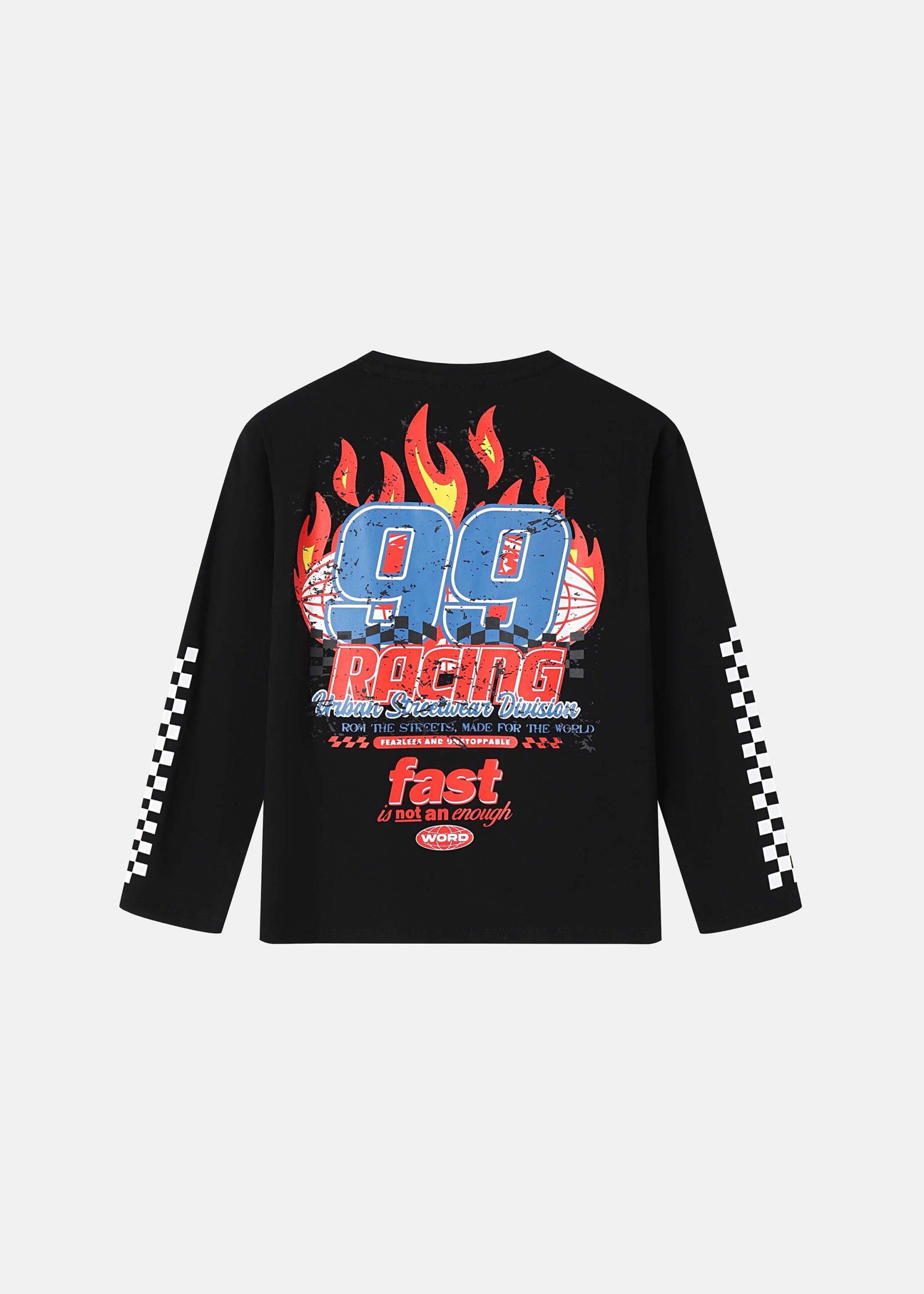 بلوزة اطفال ولادي, طباعة رسومات مع كتابة “Racing” من الامام والخلف, ياقة مدورة, اكمام طويلة, انيقة وعملية