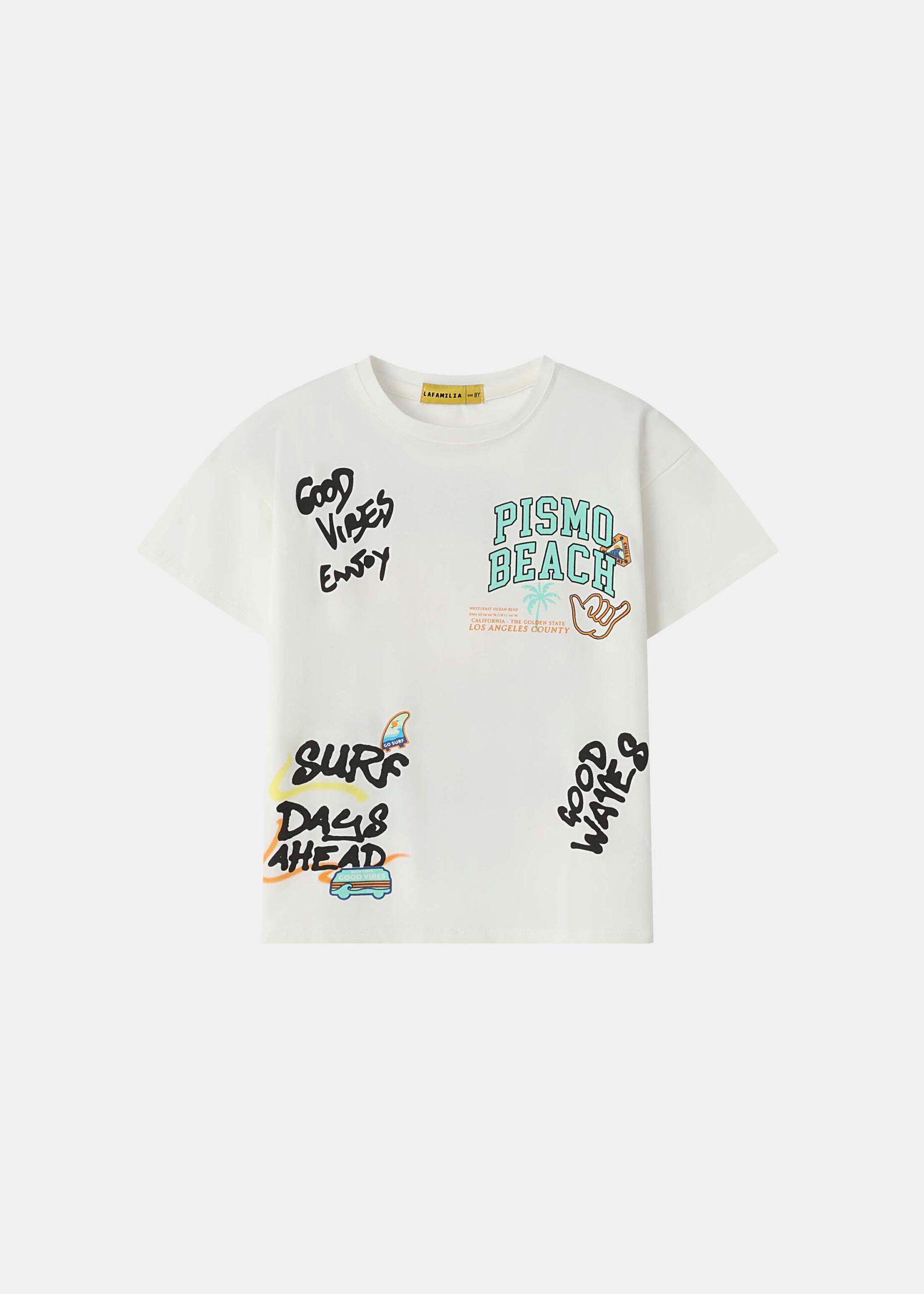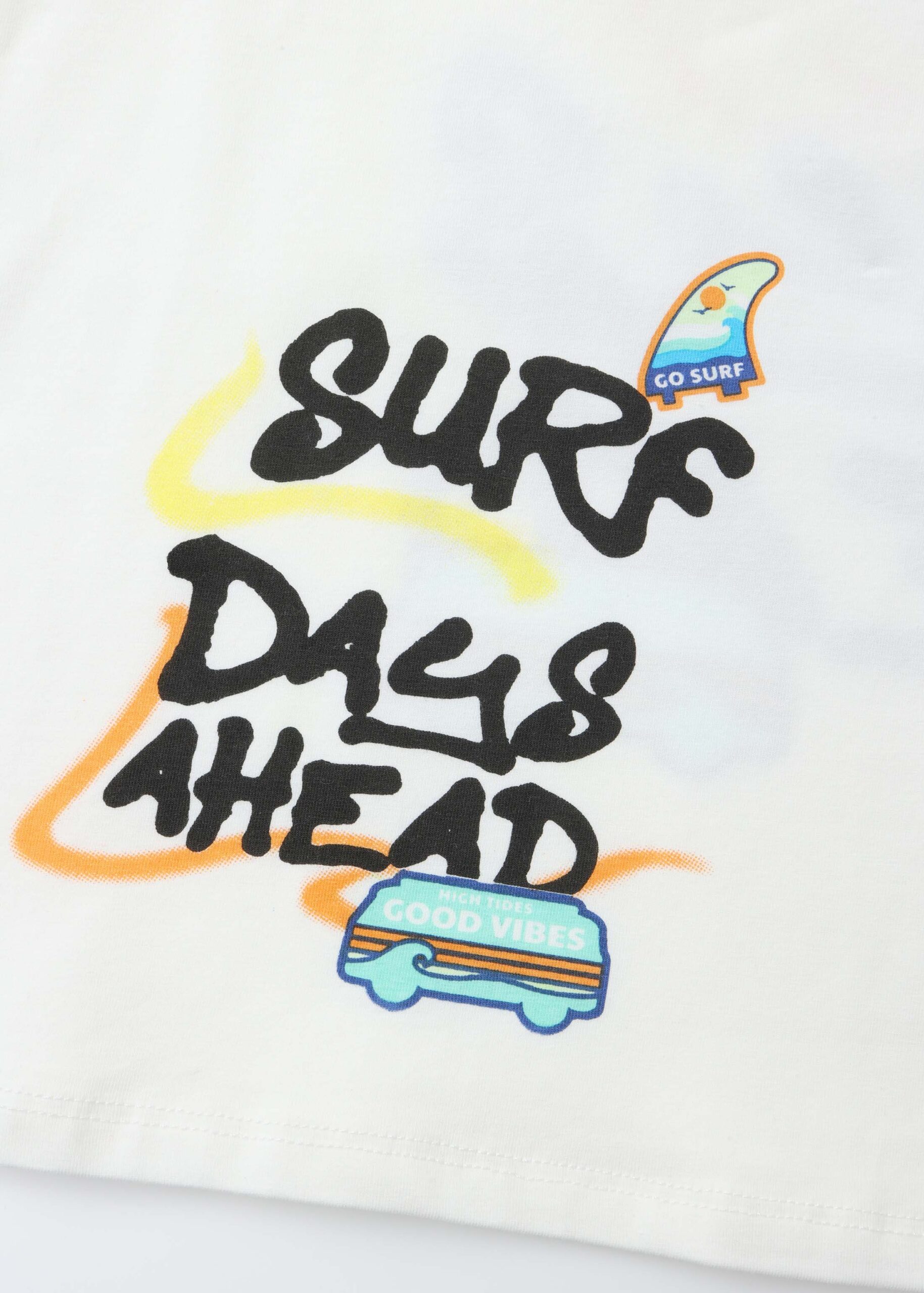 تيشيرت اطفال ولادي, كتابات مطبوعة من الامام والخلف “Surf Days Ahead” , ياقة مدورة, اكمام قصيرة, انيقة بالوان زاهية
