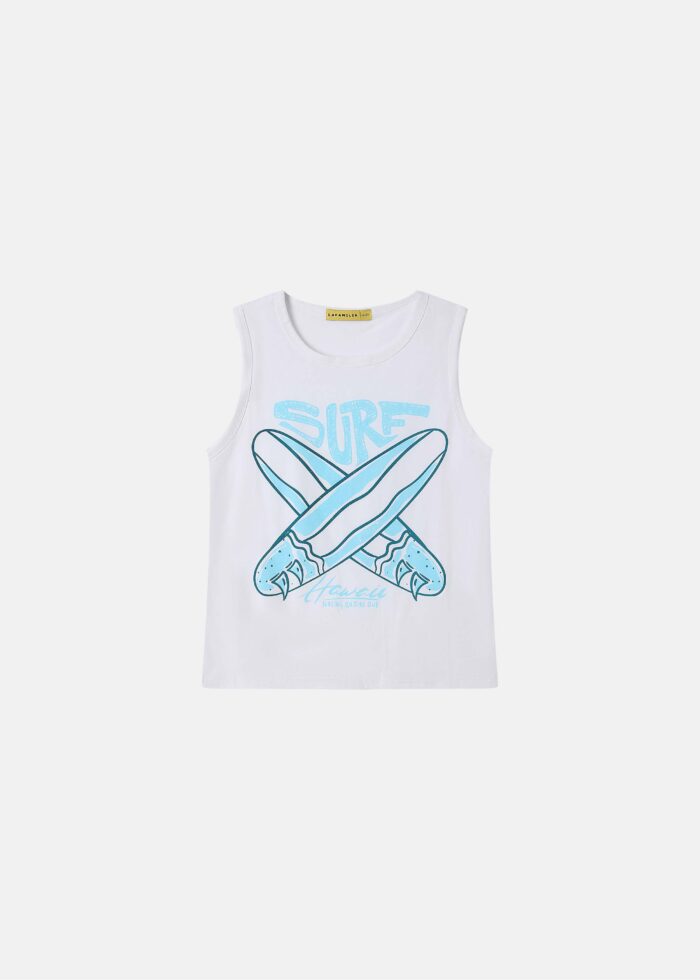 بلوزة أطفال ولادي, طباعة “Surf Hawaii” من الامام مع رسومات صيفية, ياقة مدورة, بدون اكمام, انيقة وعصرية