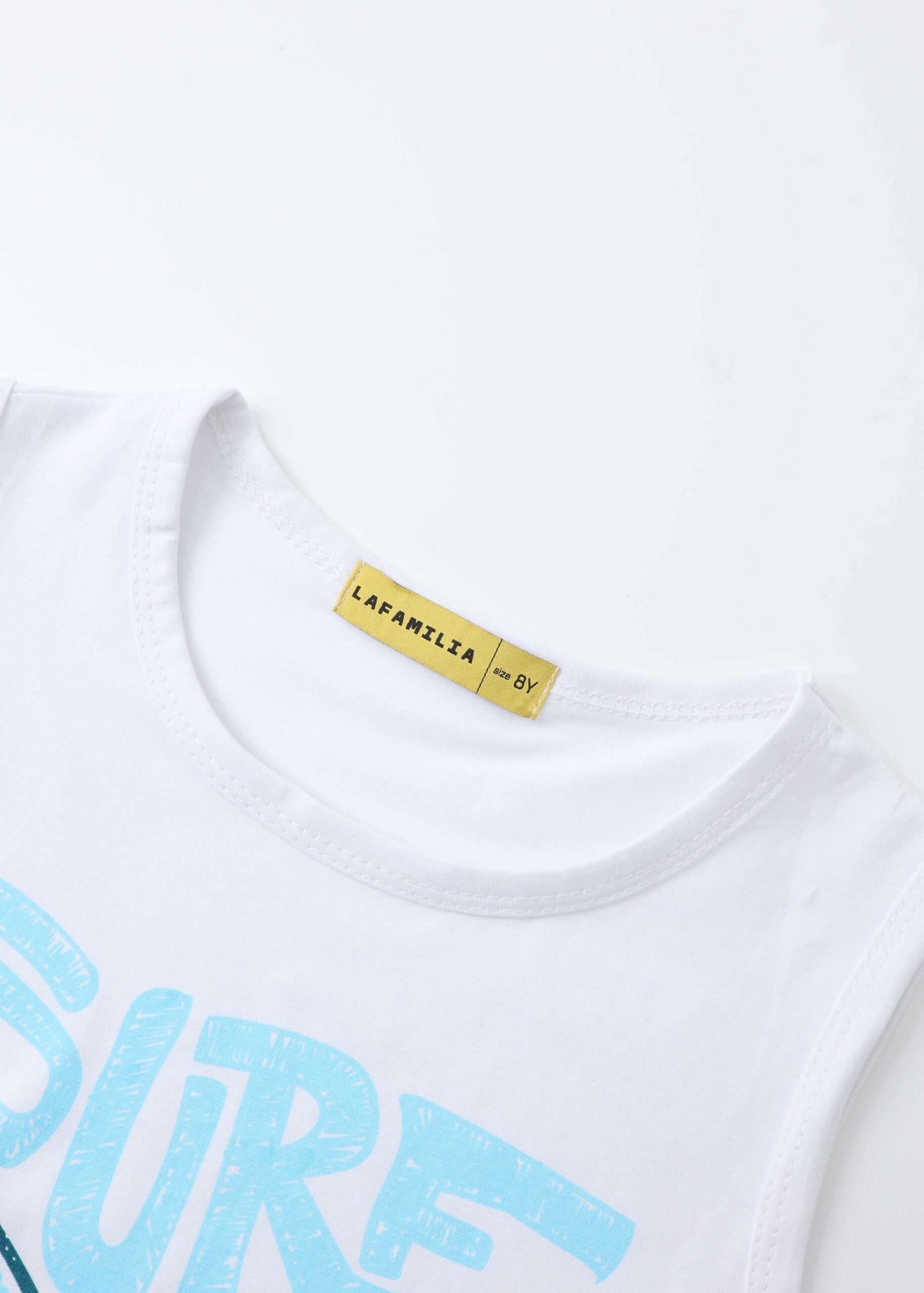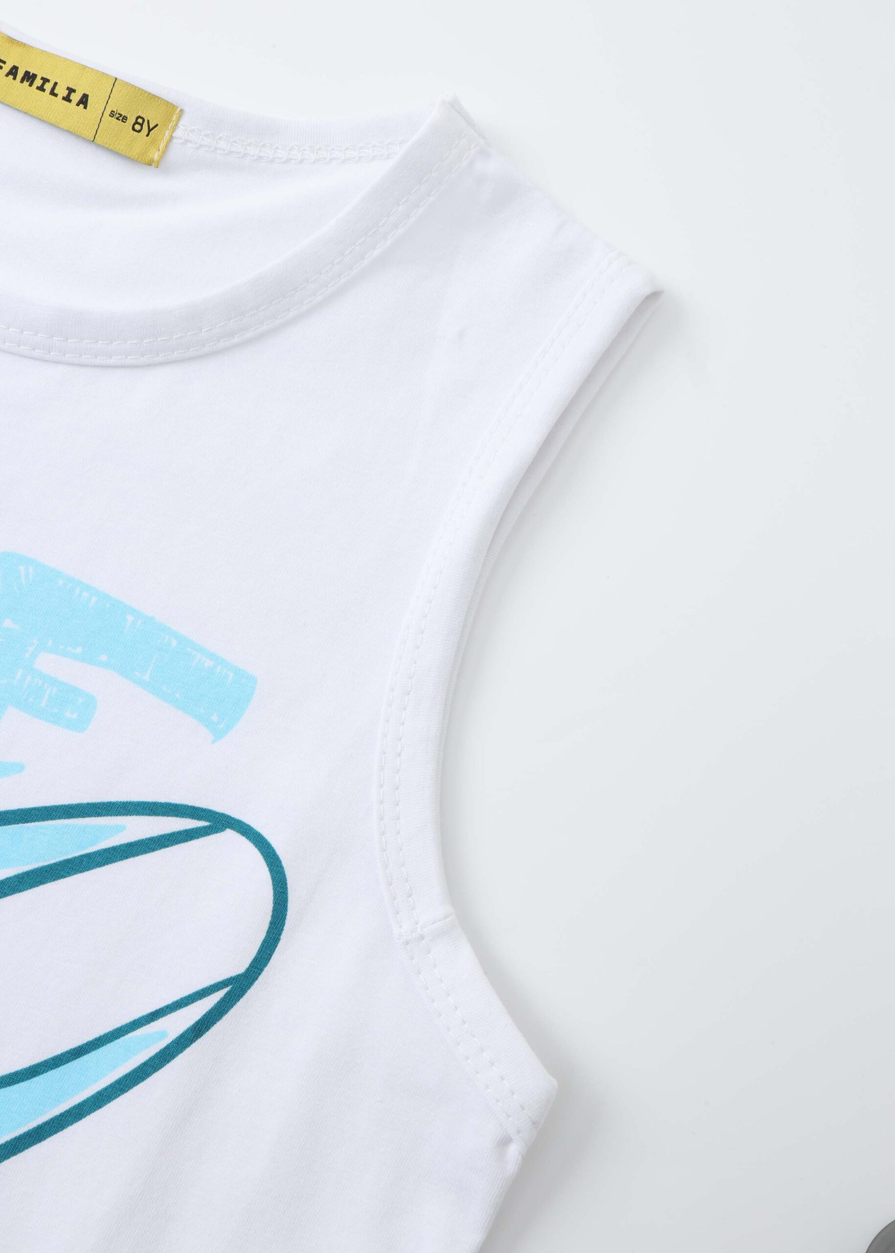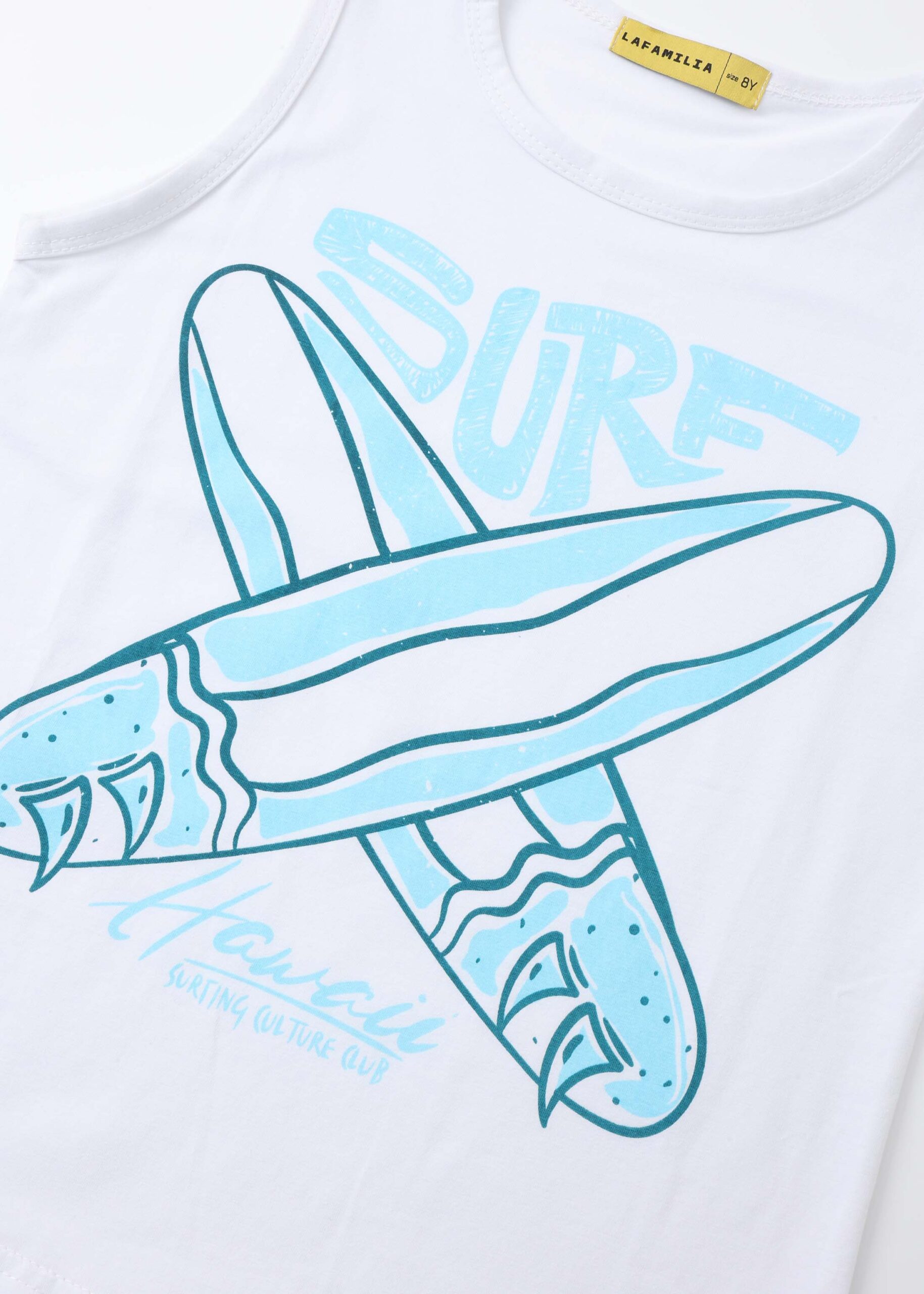 Kids boy top, front “Surf Hawaii” printed, round neck, sleeveless, unique and modern