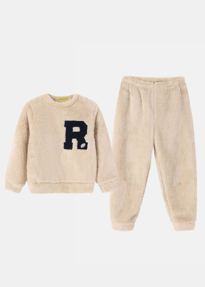 بيجامة أطفال ولادي, قطعتين, طباعة “R”, بلوزة, ياقة مدورة, اكمام طويلة, بنطلون, سادة, خصر مطاطي, كاحل مطاطي, مريحة وعملية