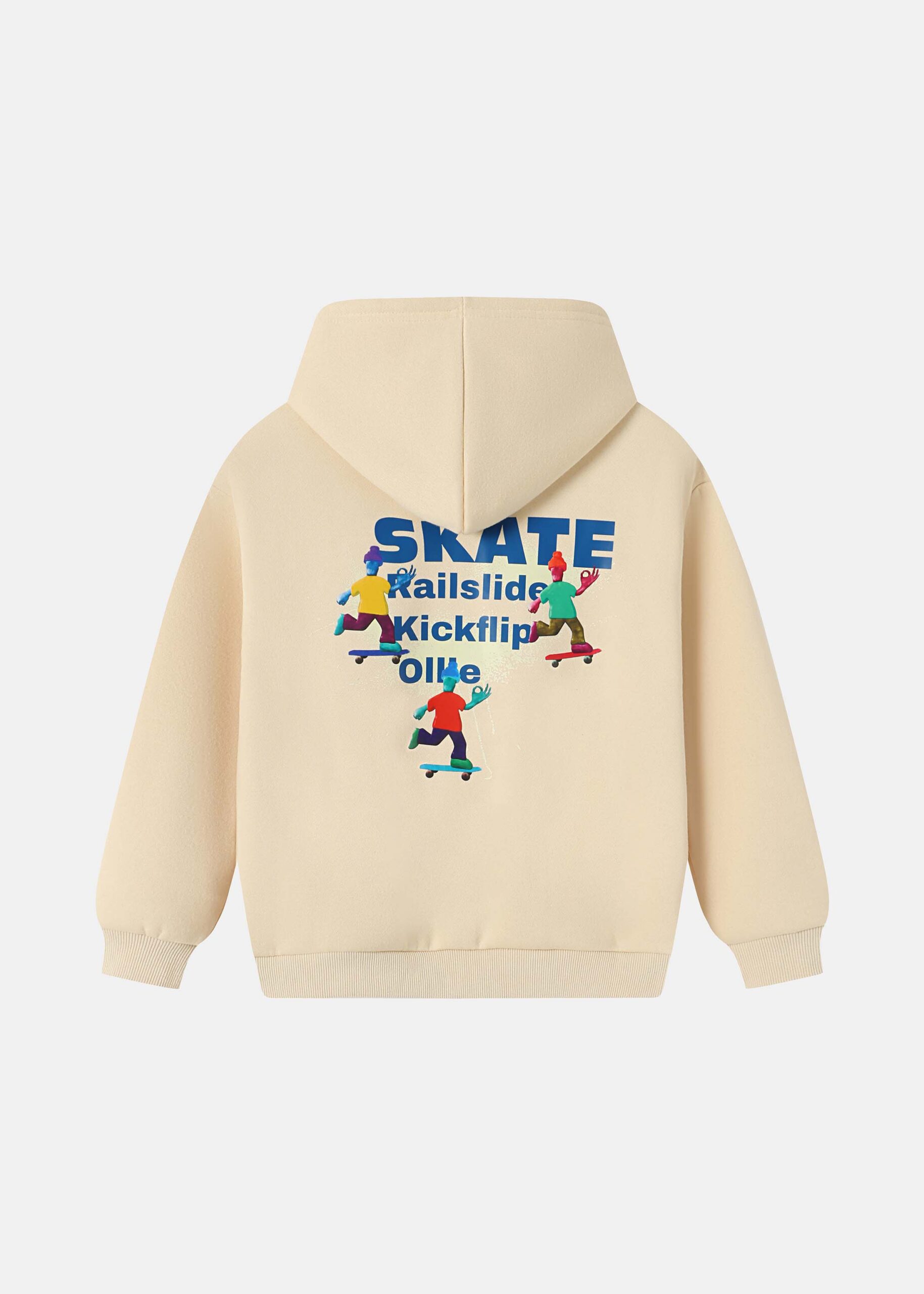 Kids boy hoodie, “Skate Railslide, Kickflip, Ollie” printed from the front and back, hood, long sleeves with tight cuff, warm and practical