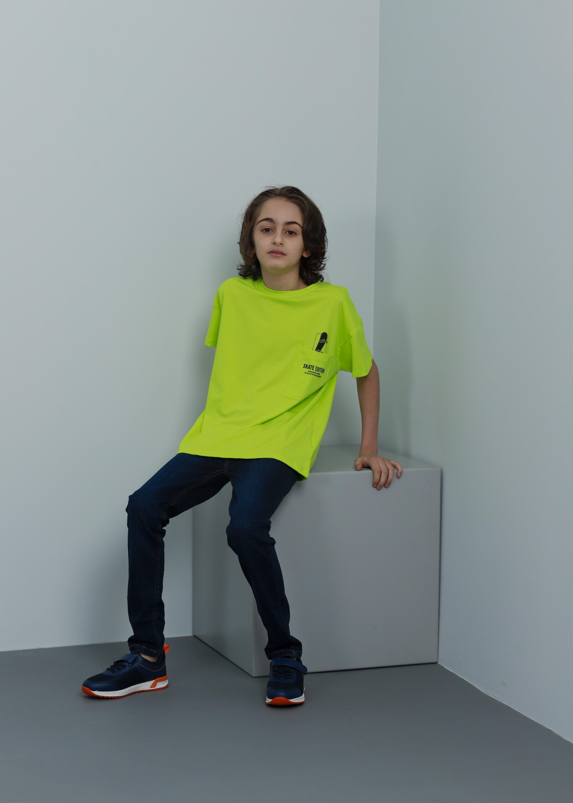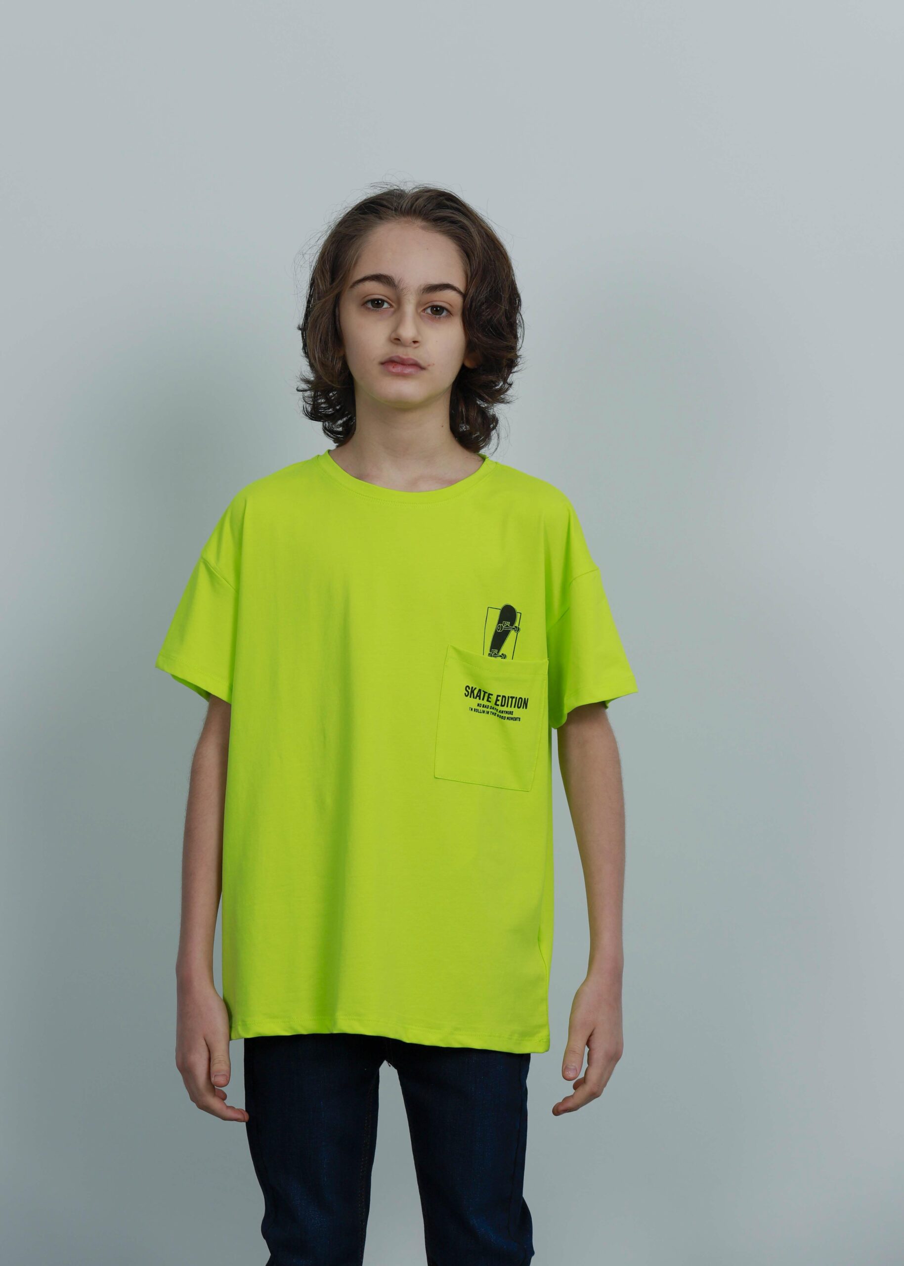 تيشيرت اطفال ولادي, طباعة تصميم سكيت من الامام, ياقة مدورة, اكمام قصيرة, جيب امامي صغير مع طباعة كتابة “Skate edition” , انيقة وعملية, 70% قطن 25% بوليستر 5% سباندكس