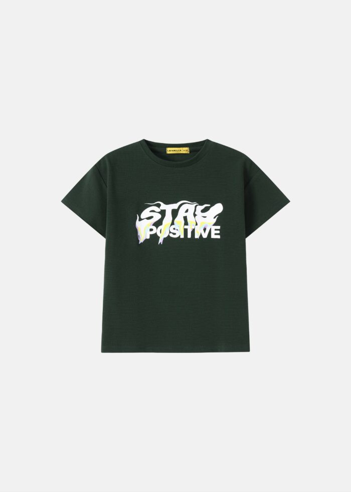تيشيرت أطفال ولادي, طباعة “Stay Positive” من الامام والخلف, ياقة مدورة, اكمام قصيرة, انيقة وعملية